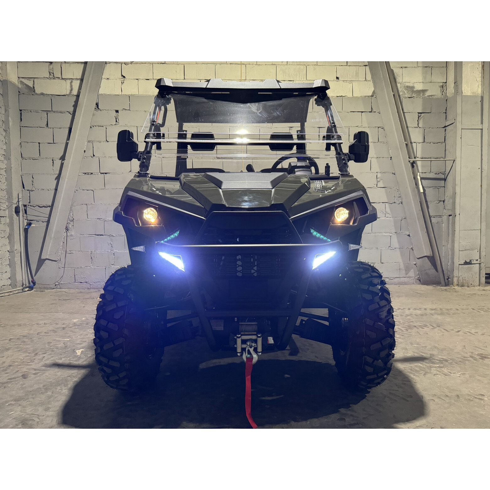 Знаменитый UTV 550 T-Boss EPS стал еще лучше, прочнее и долговечнее. Современный дизайн со спортивным акцентом и новые алюминиевые диски привлекают внимание с первого взгляда. Усилитель руля делает вождение приятным и легким даже при полной загрузке. Новый стальной кузов выдерживает даже суровые переезды. Кроме того, двигатель совершенно новый, мощнее, живее и экономичнее. Новый Linhai-Yamaha 550 T-BOSS EPS — идеальный помощник для любых работ в лесу, на строительных площадках, в парках, в саду, на спортивных объектах и для снабжения горных отелей.Новый одноцилиндровый двигатель с электронным впрыском обладает повышенной мощностью, которой достаточно для интенсивной работы и быстрого разгона. Современный впрыск топлива обеспечивает низкий расход топлива и низкий уровень выбросов. Передачу мощности обеспечивает надежная автоматическая коробка передач ведущего канадского производителя CVTech, которая также оснащена парковочным режимом P.Широкая конструкция шасси обеспечивает устойчивость на любой местности, большой ход подвески и низкий центр тяжести обеспечивают комфортное вождение. Все колеса имеют независимую подвеску. Комфортное вождение также обеспечивается соответствующей развесовкой и небольшим радиусом поворота.Многофункциональный ЖК-дисплей с синей подсветкой легко читается и содержит всю необходимую информацию: цифровые тахометр и спидометр, индикатор пробега, индикатор моточасов, индикатор привода 2х4/4х4, индикатор температуры охлаждающей жидкости, цифровой индикатор уровня топлива, индикатор нейтральной передачи, Индикатор дневных ходовых огней, поворотников и задней передачи.Linhai UTV 550 T-BOSS EFi EPS в стандартной комплектации оснащен прочной, устойчивой к ультрафиолетовому излучению крышей, двойным плексигласом, массивным передним обводом, пластиковые двери, ручками для пассажиров, большим транспортировочным ящиком, подголовниками, буксирным крюком и лебедкой с дистанционным управлением и тяговым усилием 3000 фунтов.