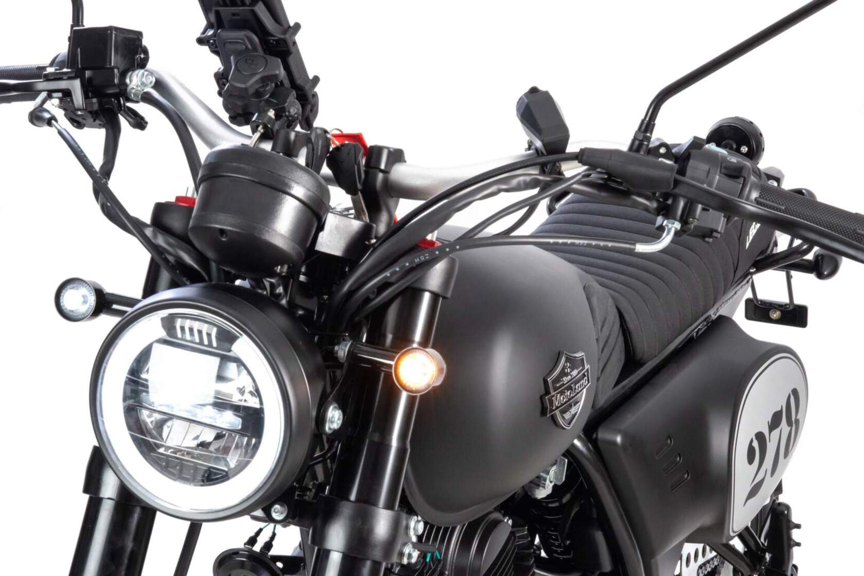 LEGEND 300 – является стильным мотоциклом с достойными характеристиками в бюджетной категории. Дизайн мотоцикла выполнен в гоночном ретро стиле, укомплектованный современной LED оптикой, приборной панелью, титановым выхлопом, креплением номерного знака и прочими канонами современности.Низовой покладистый мотор, классическая посадка, мягкое рифлёное сидение и спицованные колеса – всё это способствует комфортному управлению по асфальтированным дорогам и пересеченной местности.LEGEND 300 был спроектирован как универсальный мотоцикл, для райдеров любых возрастов. На нём будет комфортно в городе, посёлке, деревне, поле и даже в лесу.Мотоцикл оснащен двигателем 175FMM-5 (баланс. вал) с 6 ступенчатой коробкой передач, мощностью 25 л.с. Впуск оснащен карбюратором Keihin PZ30, выпуск – титановым выхлопом от Motoland.Установлена металлическая защита картера, алюминиевые крылья и защита цепи, усиленный толстостенный руль и усиленная 520 цепь.