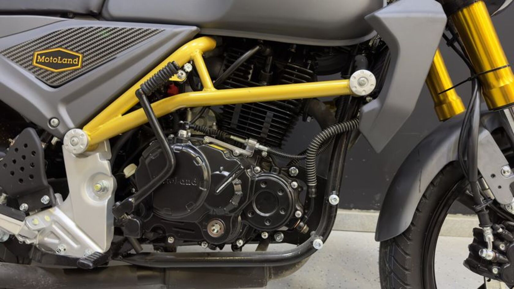 В мотоцикле MOTOLAND SCRAMBLER 250 установлен двигатель YX 165FMM, одноцилиндрового типа. В данной модели присутствует воздушное охлаждение. Доржник SCRAMBLER 250 оснащен пятиступенчатой коробкой передач. Передние и задние тормоза дискового типа. Стоит отметить LED фару, которая многим придется по вкусу.