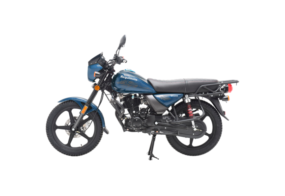 Несмотря на классический внешний вид Regulmoto SK 150-8 отличается достаточно интересным и продуманным дизайном. В раме мотоцикла установлен одноцилиндровый 4-тактник с воздушным охлаждением с рабочим объемом в 149 см3. Двигатель можно запускать как кнопкой электростартера, так и при помощи традиционного кик-стартера. В целом байк выглядит лаконичным и современным – еще одной приметой актуальных трендов стали литые диски переднего 18-дюймового и заднего 16-дюймового колес. Также на переднем колесе установлен дисковый тормоз, хотя в ступице заднего колеса реализован проверенный многими десятилетиями вариант с тормозом барабанного типа. Характерная для «дорожников» подвеска представлена телескопической вилкой впереди и двумя амортизаторами сзади.