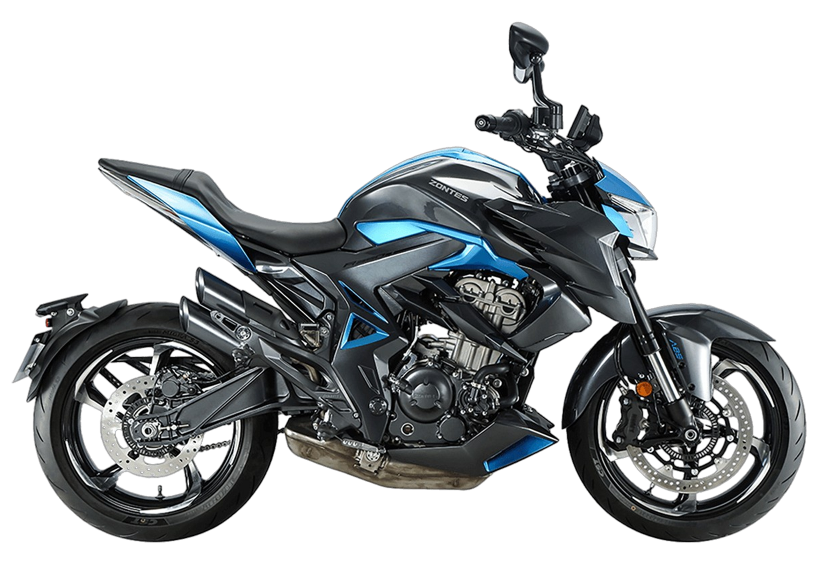 Мотоцикл ZONTES ZT350-R – современный нейкед со стремительным и дерзким дизайном. Хорошо подходит как для поездок в городской среде и маневрирования в межрядье.Силовая установка представлена одноцилиндровым 4-тактным двигателем ZT184MP с 4 клапанами и 2 верхними распредвалами. Двигатель имеет объём 348 см³ и обеспечивает мощность в 39 л.с. Оснащён инжектором BOSCH и системой жидкостного охлаждения. Механическая коробка передач имеет 6 ступеней и схему 1-N-2-3-4-5-6. Запуск двигателя осуществляется с помощью бесключевого доступа.Ёмкость топливного бака 15 литров.Колёса представлены литыми алюминиевыми дисками диаметром 17 дюймов. На мотоцикл установлены датчики давления в шинах, показатели от которых выводятся на приборную панель. Для подвески спереди используется телескопическая вилка, сзади – моноамортизатор. Гидравлические дисковые тормоза произведены испанской компанией J.JUAN, входящей в холдинг BREMBO.Для освещения используется яркая LED-оптика, а приборная панель представлена цифровым дисплеем. Имеется 2 USB-порта.Габариты мотоцикла 2030х795х1120 мм. Колёсная база 1390 мм. Высота по седлу 795 мм. Вес 165 кг.Комплектация и внешний вид мотоцикла могут отличаться в зависимости от поставки. Изображение на сайте не гарантирует наличие тех или иных опций. Уточняйте информацию при оформлении заказа.
