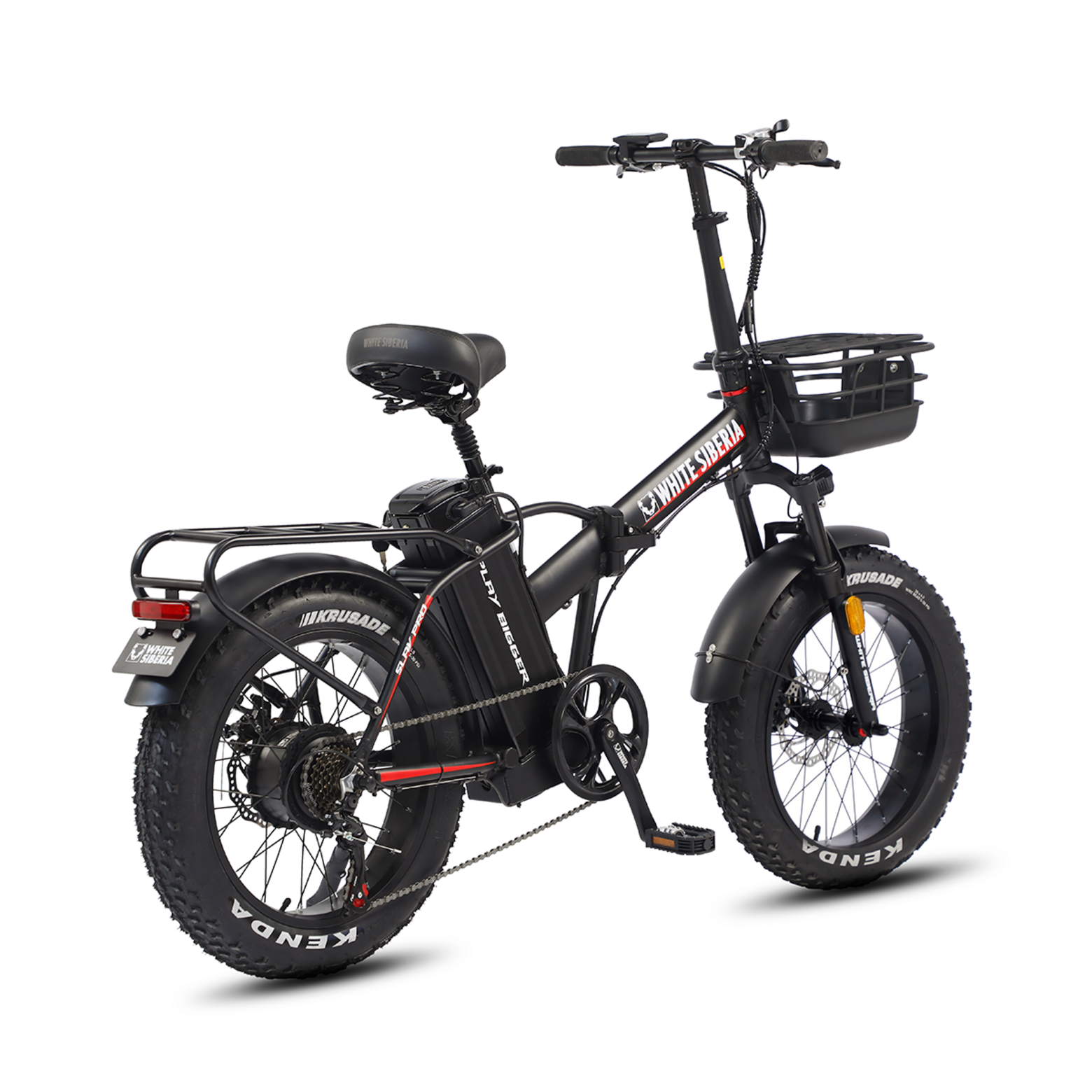 Электровелосипед WHITE SIBERIA SLAV PRO 1000WЭлектрический мини фет-байк - компактный и удобный маленький друг. С ним вы сможете комфортно передвигаться по городу, а в случае необходимости - сложить и уехать в пригород! Он создан для неспешных и комфортных велопрогулок по дорогам российских городов и пригорода!Чем же SLAV PRO так хорош?Мощный электромотор на 1000W отлично помогает на подъёмах в горку и экономит ваши силы во время дальних поездок! Он позволит вам взглянуть по-новому на покатушки - даёт насладиться дорогой и красотами города и парков!Усиленная рама из авиационного алюминия с легкосъёмной батареей на 48V 13A. Окрашена порошковой краской - надёжно защищена и красиво выглядит, благодаря 3 вариантам расцветки.Лёгкая, но прочная - велосипед в сборе весит всего 30 кг! Складная конструкция позволяет легко перевезти фет-байк в багажнике автомобиля или в общественном транспорте. Даже педали складываются! Так что во время хранения он занимает очень мало места.Колёса на 20 дюймов и шириной 4.0 - отличное соотношение манёвренности и проходимости! А благодаря резине Kenda с универсальным рисунком протектора - ещё и отличное сцепление с различными типами дорожных покрытий. Широкая резина лучше преодолевает различные препятствия - бордюры, корни деревьев, камни. В сочетании с регулируемой амортизационной вилкой - получается универсальный, устойчивый фет-байк.Металлические крылья на переднем и заднем колёсах полностью закрывают водителя от грязи, камней и брызг из-под колёс! Ведь широкая толстая резина с камерами даёт возможность ехать там, где другие идут пешком!Качественное навесное оборудование от фирмы SHIMANO, большой дисплей бортового компьютера с подсветкой, удобный лепесток газа, усиленный металлический багажник, передняя корзинка - всё это для вашего комфортного передвижения на мягком сидении электровелосипеда SLAV PRO 1000W.Дисковые механические тормоза спереди и сзади - просты и надёжны. А благодаря наличию подножке, ваш мини фет-байк может опереться и подождать, пока вы наслаждаетесь чашечкой ароматного кофе!Электровелосипед SLAV PRO - для ценителей компактных размеров, но огромных возможностей! Отдыхайте с удовольствием!