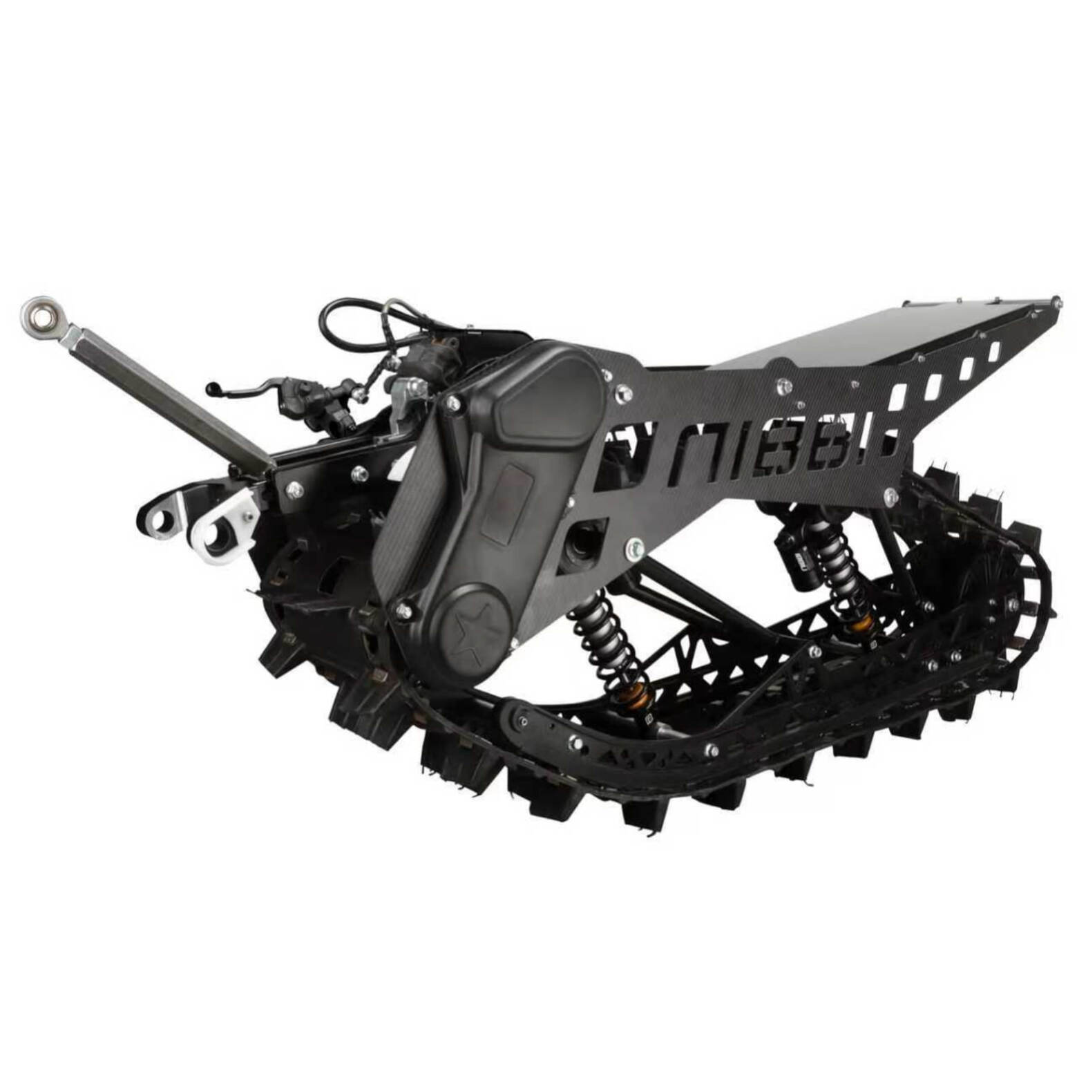 NIBBI Vanguard R-120 — это система переоборудования, которая позволяет превратить кроссовый мотоцикл в сноубайк для экстремальных зимних заездов. Комплект заменяет переднее колесо на лыжу, а заднее — на гусеницу, что открывает новые возможности для покорения снежных просторов.Ключевые преимущества и особенности:Вездеходная гусеничная система: Гусеница размером 3050 × 300 мм с грунтозацепами высотой 50 мм обеспечивает превосходное сцепление и проходимость. Комплект позволяет уверенно двигаться по снегу глубиной от 15 см и преодолевать даже глубокий рыхлый снег до 1,5–2 метров.Подвеска профессионального уровня: Стандартная подвеска R-120 оснащена премиальной технологией амортизации и полной регулировкой. Это позволяет настраивать демпфирование отбоя и сжатия в трех режимах для точного контроля в любых снежных условиях.Проверенный цепной привод: Привод инженерно разработан для максимальной надежности и использует цепь NIBBI 520 HLX2, что гарантирует стабильную передачу мощности как в глубоком снегу, так и на сложных трассах.Полная тормозная система Nibbi: Комплект оснащен собственной гоночной тормозной системой Nibbi, которая обеспечивает мощное и уверенное торможение в любых условиях.Прочная и легкая конструкция: Боковые панели из углеродного волокна снижают общий вес и повышают прочность. Все крепежные элементы заменены на высокопрочные болты с фиксатором резьбы, что исключает риск ослабления даже при экстремальных нагрузках.Технические характеристикиВ таблице ниже приведены основные технические параметры комплекта Vanguard R-120:Параметр ЗначениеРазмер гусеницы 3050 мм × 300 ммВысота грунтозацепов 50 ммШаг грунтозацепов 73 ммВес гусеничного модуля 57.45 кгТормозная система Дисковый тормоз Nibbi, однопоршневойДиаметр тормозного диска 150 ммПодвеска Два амортизатора Nibbi, с двойной регулировкой (отбой и сжатие)Задний ход подвески 85 ммПриводная цепь 520-74LЦепь в редукторе 520-52LМатериал боковых панелей Углеродное волокно (карбон)Рекомендуемый объем двигателя мотоцикла 300 куб. см и болееПрактическая информацияУстановка: Производитель позиционирует R-120 как комплект для самостоятельной установки, для чего предоставляются понятные пошаговые инструкции и видеоуроки. Однако для достижения оптимальной производительности рекомендуется обратиться к профессионалам.Обслуживание: Требуется регулярная чистка, проверка болтов и осмотр тормозов после нескольких поездок. Высокопрочная система креплений и герметичные компоненты подвески минимизируют общие затраты на обслуживание.В случае самовывоза оплата товаров производится в кассе магазина. Если товар доставляется курьером, то оплата осуществляется наличными курьеру в руки. При получении товара обязательно проверьте комплектацию товара, наличие договора купли продажи и чека.