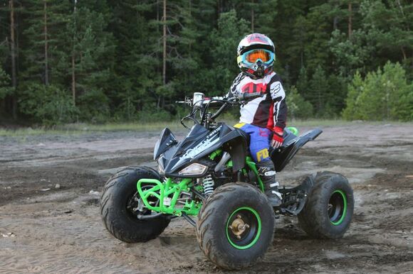 Квадроцикл бензиновый MOTAX GRIZLIK D125 LUX. Оборудован четырехтактным бензиновым двигателем, 125 кубов, мощностью 10 л.с. Развивает скорость до 55 км\ч. Допустимая нагрузка 100 кг.