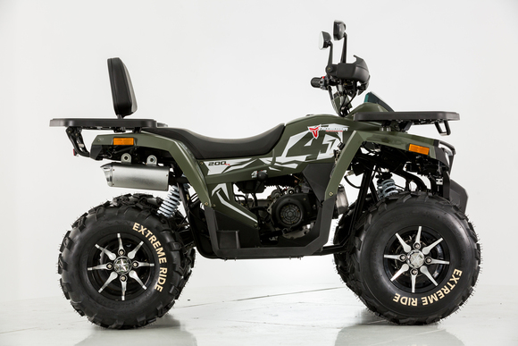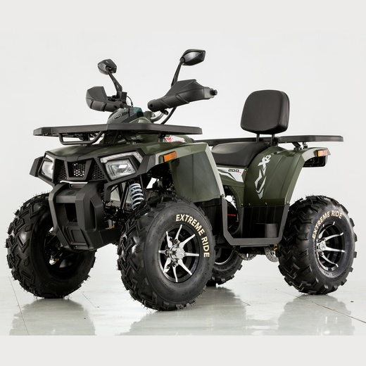 Квадроцикл TAO MOTOR SHARK 200 – сочетает в себе удобство, простоту обслуживания и хорошую проходимость в самых разных условиях использования. Благодаря отлично настроенной подвеске управление и передвижение на нем становится очень комфортным. Все неровности и кочки, будут проглатываться без проблем.Квадроцикл оснащен 161 QMK на 200 см3 двигателем c воздушно-масляным охлаждением и автоматической коробкой передач с реверсом, дисковыми тормозами, панелью приборов, ручным стартером. Он отлично подойдет для семейных покатушек, а также для рыбалки и охоты.