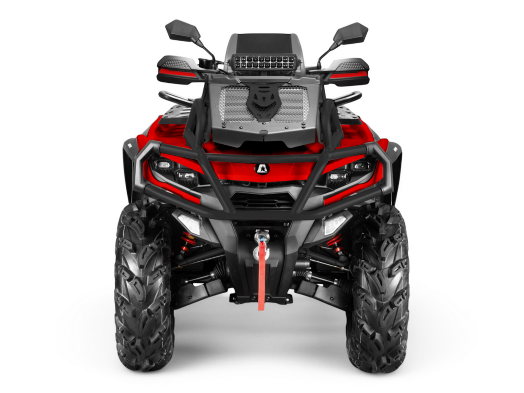 Комплектация Комбинация приборов Электронный ключ зажигания, LCD приборная панель 6,86 дюйма с индикацией основных параметров: вкл/выкл полного привода, индикацией уровня топлива, сигналов поворота и аварийной остановки, подсветки, переключение режимов усилителя руля, информация о техническом обслуживании, лампы головного света Лебедка Лебедка с синтетическим тросом и тросоукладчиком, тяговое усилие 1500 кг Элементы защиты Ветрозащита рук на руле, расширители колесных арок, усиленный передний и задний бампер, замок блокировки рулевого вала, доп. защита днища Дополнительное оборудование Электроусилитель руля, светодиодная оптика, дополнительный свет, фаркоп, вынос радиатора и шноркелей, звуковой сигнал, сигналы поворота, зеркала заднего вида, бардачок объемом 2 литра под сиденьем, алюминиевые подножки водителя, эргономичная задняя багажная площадка, розетка 12 Вольт и USB.