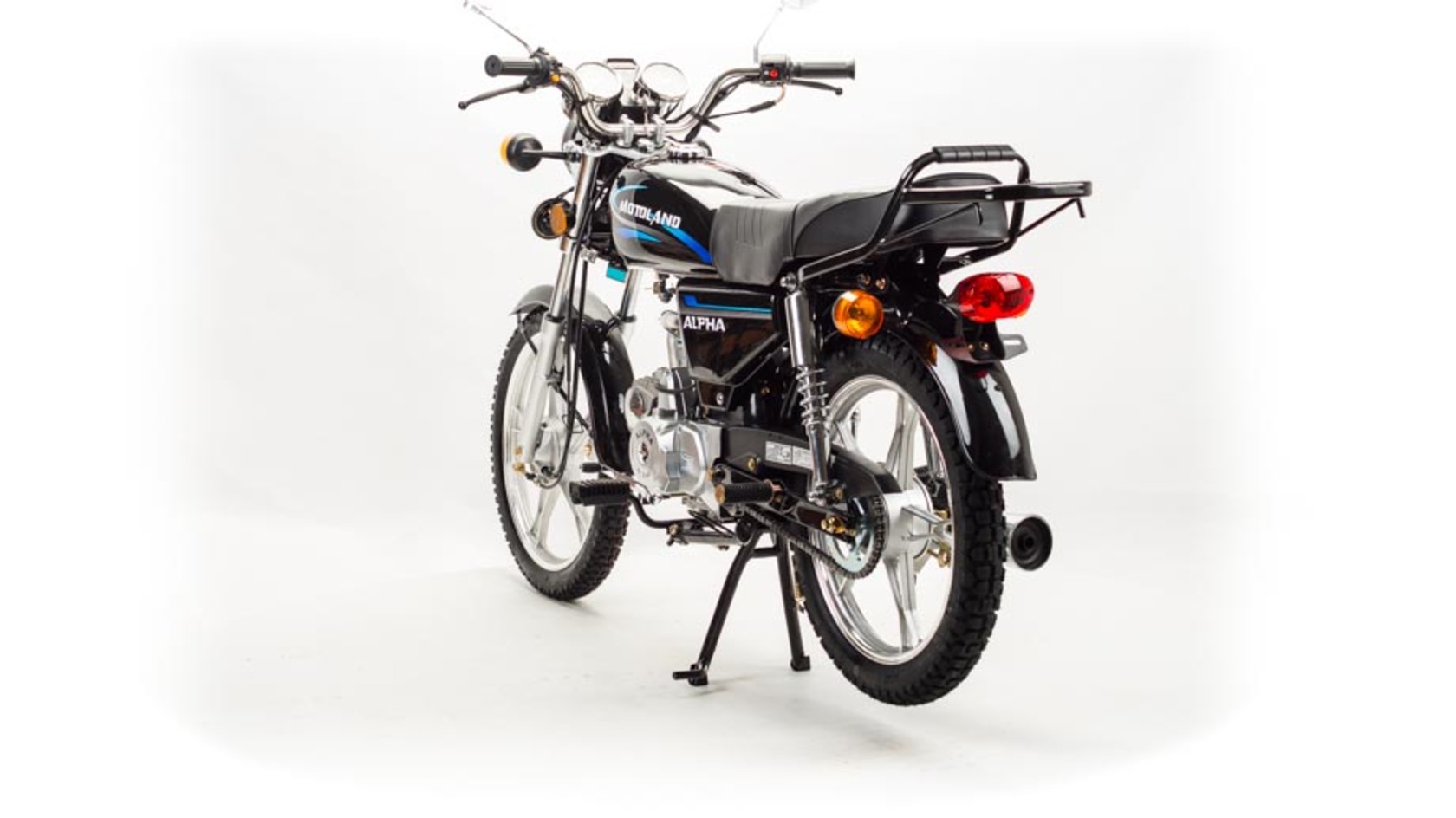 MotoLand Alpha 11 это всеми полюбившейся мопед который не нуждается в представлении.Мопед можно использовать для самых различных целей: для одиночного или совместного передвижения в городском потоке, сельской местности, поездки на природу, рыбалку и охотуПри этом он универсален и подходит мотолюбителям любого возраста,и опыта вождения.Для подростков, подойдет как подарок и первый мотоцикл для только начинающего свое знакомство с миром мототехникиВзрослых, которым нужна техника для поездок из точки А в точку Б и обратно, именно в таком режиме он способен показать себя с лучшей стороны.Мопед полностью отвечает требованиям к безопасному движению по городу и за городом: оснащен фарой дальнего и ближнего света, поворотниками, стоп-сигналом, звуковым сигналом, зеркалами заднего вида, габаритными светоотражателямиДля того чтобы ездить на мопеде, нет необходимости в регистрации в ГАИ и страховка.Техническая сторонаМопед поставляется с 50 кубовым одноцилиндровым четырехтактным двигателем с воздушным охлаждением ZS50-A (139FMB) конструкция которого полностью повторяет знаменитый мотор HONDA CUB.Установлен карбюратор PZ19 с системой обогащения и пуском в любую погоду и время года.Двигатель работает ровно, имеет высокую мощность в широком диапазоне оборотов, что позволяет комфортно трогаться и быть уверенным, что двигатель не заглохнет в неподходящий момент.Двигатель имеет возможность легкого запуска с кнопки на руле, так как имеет электростартер, а при необходимости можно воспользоваться кик стартером.Механическая трансмиссия содержит 4 передачиМопед имеет хорошую динамику разгона, расход 3 л на 100 км, объем бака 7л, которого хватит на 200+км
