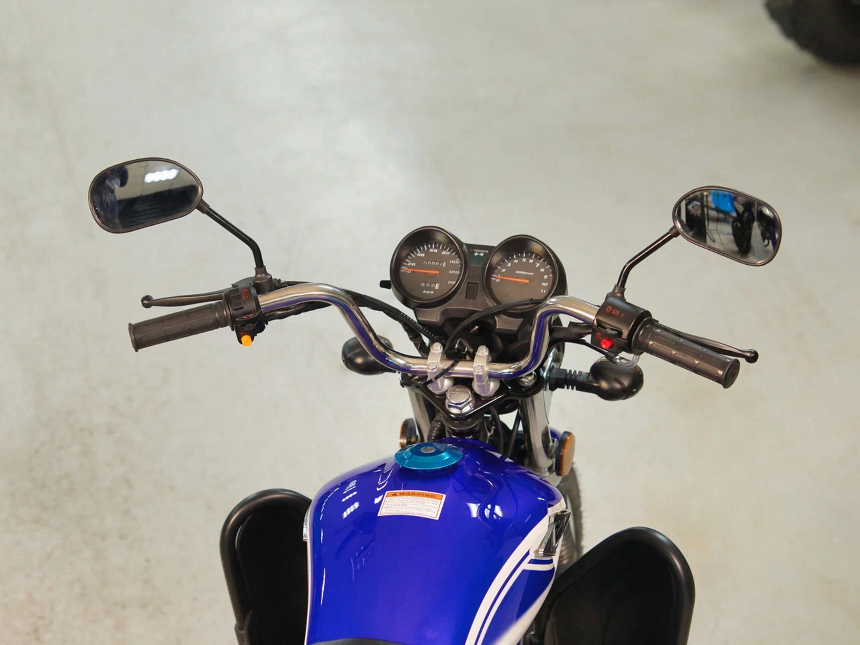 Комплектация Барабанные тормоза установлены на переднем и заднем колесе. Багажник, зеркала заднего вида, центральная и боковая подножки. Кофр, задние откидные дуги, карманы на передних дугах и широкие подножки.