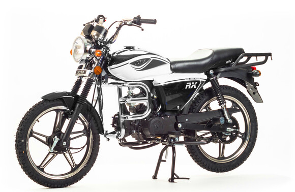 Regulmoto Alpha (RM-1) 110сс – «живая классика» китайской мотоиндустрии, один из самых доступных представителей двухколесного транспорта утилитарного назначения. Новое поколение Alpha готово продемонстрировать улучшенные показатели производительности, высокую надежность в повседневной эксплуатации и традиционную неприхотливость в сервисном обслуживании. Данный мопед комплектуется надежным «кабовским» двигателем – одноцилиндровым 4-тактником воздушного охлаждения с 4-ступенчатой трансмиссией. Рабочий объем мотора увеличен до 110 см3 благодаря установке нового комплекта ЦПГ на заводе-изготовителе. Запуск двигателя возможно осуществить как при помощи кнопки электрострартера, так и при помощи рычага традиционного кик-стартера. Увеличение рабочего объема мотора заметно сказывается как на максимальной развиваемой мощности, которая составляет чуть больше семи лошадиных сил, так и на эксплуатационных характеристиках техники.Среди других усовершенствований комплектации обновленного Regulmoto Alpha (RM-1) следует отметить более мощные передние амортизаторы (диаметр до 28 миллиметров), усиленные тросы переднего тормоза и сцепления, современную светодиодную лампу в фаре головного света. Кроме того, на Regulmoto Alpha (RM-1) установлен полный комплект светотехники, зеркала заднего вида, аналоговая приборная панель, на которой отображаются пробег, скорость, выбранная передача, обороты двигателя, индикаторы работы поворотников и фары. Также имеются подножки для пассажира, багажный кофр, кожух защиты цепи и дуги безопасности.Владелец новенького Regulmoto Alpha (RM-1) по достоинству оценит экономичный двигатель, высокую надежность конструктивных решений и доступную стоимость сервисного обслуживания техники. Мопед полностью готов к комфортному использованию на дорогах города и проселках пригорода и способен успешно справляться с широким кругом эксплуатационных задач.