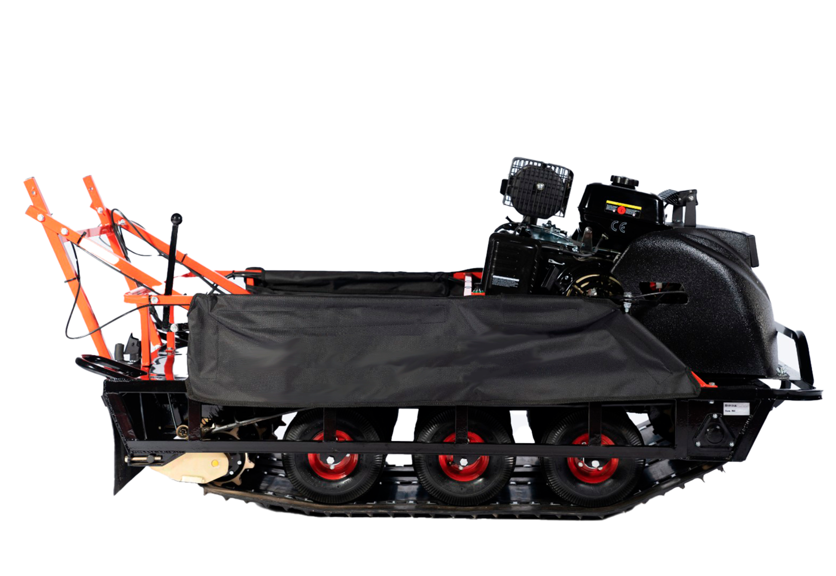 Мотобуксировщик Бурлак Экспедитор с возможностью всесезонного использования* Две гусеницы шириной 38см каждая обеспечивают высокую проходимость по любым видам покрытий. Подвеска унифицирована: зимой рекомендуется использование снегоходных тележек (катковая подвеска), летом и в межсезонье идеально работает пневмоподвеска.Данная модель управляется так же, как и любой классический мотобуксировщик, - при помощи складного руля, стоя либо сидя в волокушах зимой и в прицепе летом. Таким образом, нет необходимости ставить данную технику на учет и получать права на управление. Для зимы также разработан толкач для комфортной езды по глубокому снегу.Базовая модель комплектуется двигателем Lifan мощностью 15 либо 17 л.с. с катушкой 3А и регулятором напряжения, коробкой реверса, тормозом.Максимальная комплектация мотобуксировщика Бурлак Экспедитор поставляется с двигателем Lifan мощностью 17 либо 18.5 л.с. с катушкой 7А и регулятором напряжения, коробкой реверса, тормозом, а также включает подогрев ручек руля и курка газа, дополнительный источник освещения в виде светодиодной балки и дополнительную розетку.*Для всесезонного использования рекомендуется приобрести оба варианта подвески. Пневмоколеса не рекомендуется эксплуатировать при минусовых температурах.