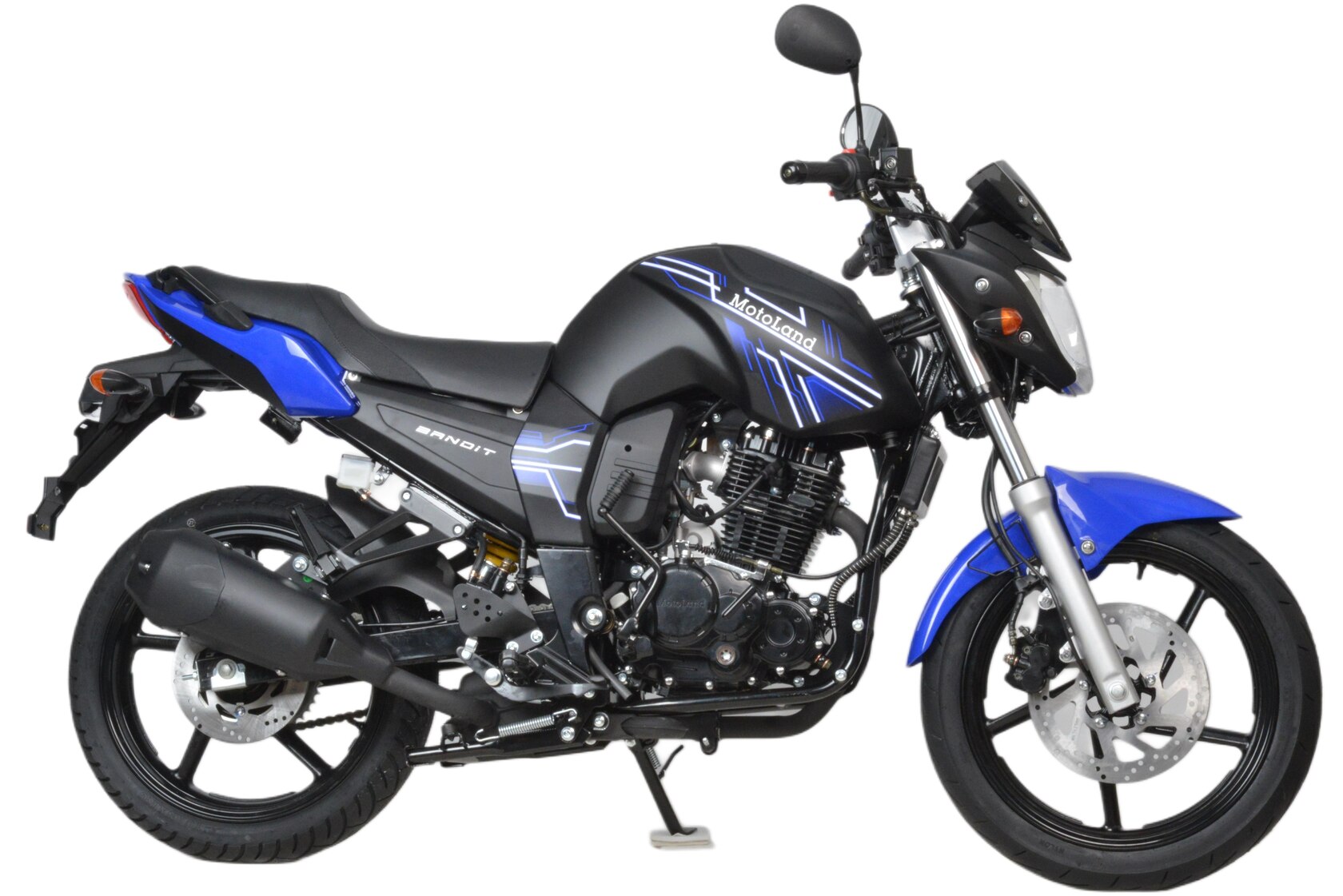Мотоцикл Motoland BANDIT 300 является классическим представителем семейства дорожным мотоциклов. При этом он обладает всеми чертами мощного сити-байка необходимыми для комфортного передвижения как по городу, так и по шоссе.Стальная рама, объем топливного бака 18 литров. Расход топлива 3 л. на 100кмПодвеска передняя: Телескопическая. Подвеска задняя: моноамортизатор.Колесные диски алюминиевые, размер колес — 17 дюймов. Размер резины (перед / зад): 100/80/17 140/60/17Зеркала, крепление под номер, подножки второго пассажира. Тормоза дисковые. Мягкое сиденье, обшивка из кож-замаФара, электростартер, замок зажигания, АКБ, поворотники, стоп-сигнал, электронная приборная панель.Двигатель 175FMM бензиновый с воздушно-масляным охлаждением, его рабочий объем - 300 кубов, мощность 25 л.с. Коробка передач - механическая, 5-ступенчатая, знакомая всем водителям по автошколе, а потому разобраться не составит труда.