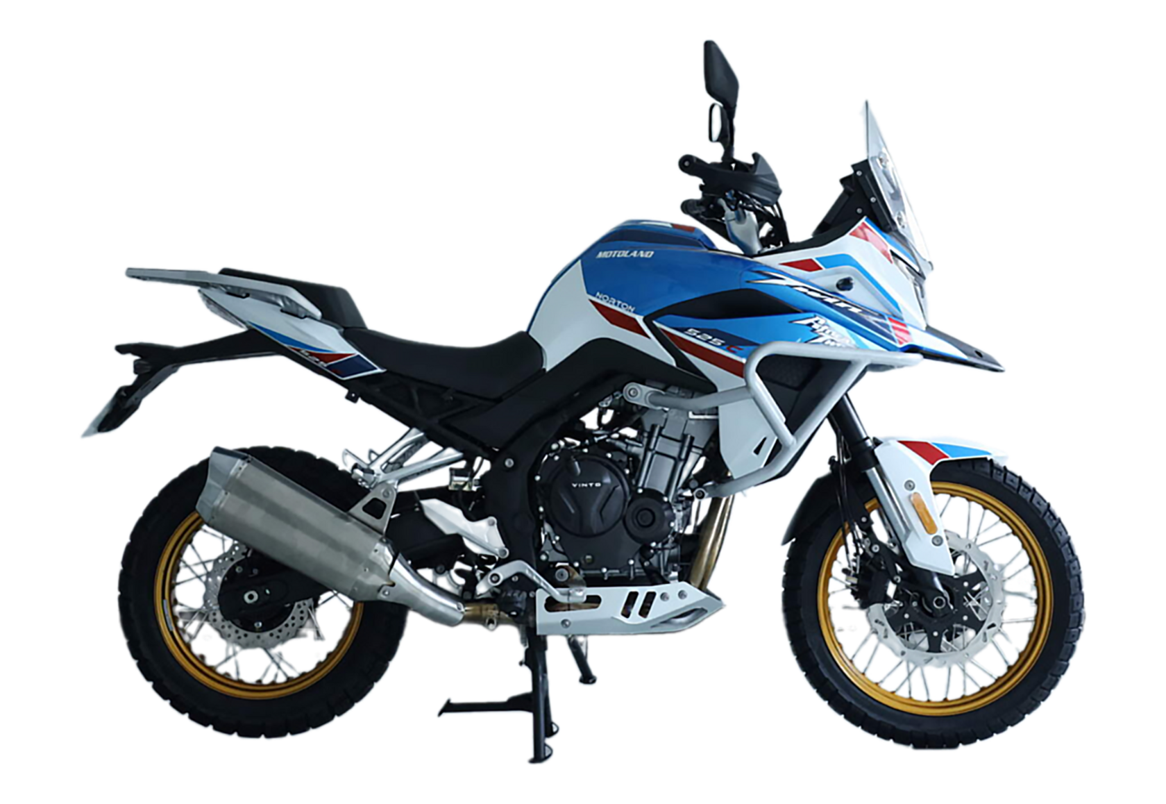 MotoLand 500 ENDURO NORTON на 525 куб.!!!Мотоцикл дорожный MotoLand (Мотолэнд) 500 ENDURO NORTON с ПТС выделяется рядом отличительных особенностей и богатой комплектацией, а так же имеет положительные характеристики.MotoLand (Мотолэнд) 500 ENDURO NORTON — это идеальный вариант для путешествий и скоростных поездок. Модель оснащена одним из самых надёжных двигателей 525 СС (525 куб.) - 2-х цилиндр., 4-тактным LONCIN с жидкостным охлаждением и большим запасом мощности.Система подготовки топлива — инжекторная (EFI), что позитивно отражается на потенциале использования мотоцикла. Мотоцикл с ПТС, а значит на нём можно разъезжать по дорогам общего пользования. Также его можно эксплуатировать в тяжёлых условиях езды, ведь благодаря резине двойного назначения, клиренсу в 210 мм, тщательно продуманной эргономике и регулируемой подвеске он без проблем преодолевает труднопроходимые участки с грязью, пылью и песком. Ведёт себя собранно и не скачет при открытии газа. У мотоцикла — ABS, система помощи при торможении, современная LCD приборная панель с диагон. 7", качественная LED-оптика, что добавляет удобства при езде в тёмное время суток, а также топливный бак с большим объёмом и, соответственно, увеличенным запасом хода без дозаправки. В базе присутствуют сигнализация, дуги безопасности, металлический маятник с алюмин.прогрессией, алюмин. ступицы и мощная алюмин. защита картера.Этот мотоцикл — настоящая революция в сегменте туристических эндуро в плане вездеходности, технической оснащённости и качества.Коллаборация с концерном Zongshen Инжекторный двигатель