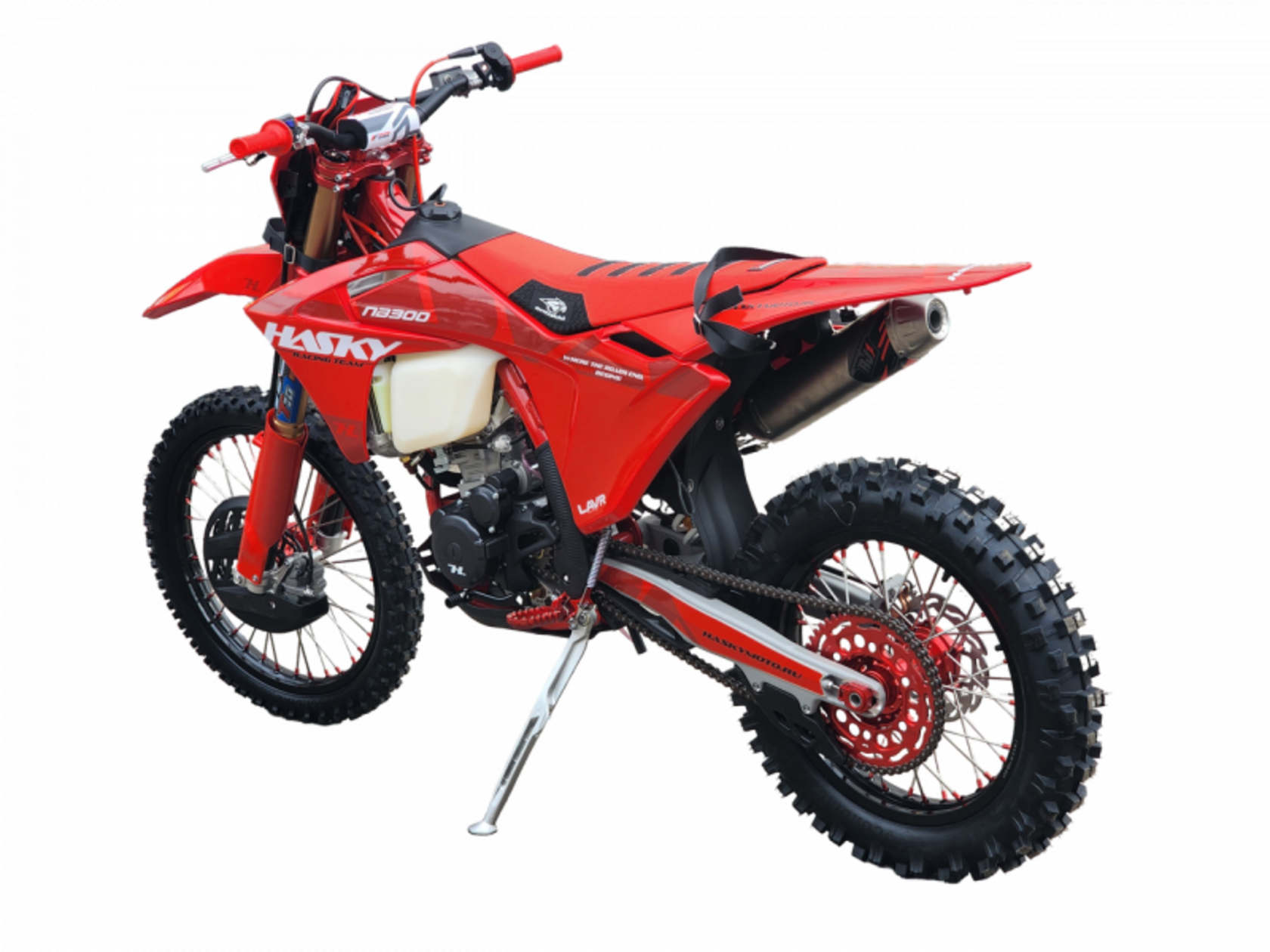 Hasky A10 Pro NB300 2025 — это флагманский эндуро-мотоцикл нового поколения, созданный с упором на максимальную надёжность, проходимость и гоночные характеристики. Эта полноразмерная модель на базе колёс 21/18 разработана для райдеров, которым нужна топовая техника без компромиссов.В сердце байка — мощный двигатель ZS174MN-5A NB300 объёмом 300 см³ с балансирным валом, обеспечивающий мягкую работу и эффективную тягу на всём диапазоне оборотов. Он работает в паре с шестиступенчатой коробкой передач и запускается электростартером. За идеальную топливную смесь отвечает карбюратор NIBBI PWK34 RACING, который уверенно раскрывает весь потенциал двигателя даже в экстремальных условиях.Основой конструкции служит новая рама A10, спроектированная с учётом высоких нагрузок и агрессивной езды. Подвеска — один из главных козырей модели: вилка HTW T10 с 48 мм перьями закрытого картриджа с полными регулировками, а также задний амортизатор AJ1 на японских комплектующих позволяют точно настраивать мотоцикл под любой стиль катания. Конструкция без прогрессии обеспечивает прямую обратную связь от трассы.Пластик выполнен в стиле GASGAS 2024 года, что подчёркивает спортивный характер байка. Выхлопная система с титановой трубой глушителя снижает вес и улучшает терморежим. Руль из алюминиевого сплава 7075 усиленного типа, новые широкие пеги AJ1, грипсы AJ1 Lock On и антискользящее сиденье AJ1 обеспечивают комфорт и полный контроль в любой ситуации.На мотоцикле установлены усиленные алюминиевые обода 7050 серии с фрезерованными ступицами, толстые камеры со стенкой 3 мм и фиксатор покрышки AJ1. Покрышки Cordial на обоих колёсах обеспечивают уверенное сцепление с любым покрытием.Тормозная система AJ1, выполненная по образцу Brembo, даёт максимальное замедление и стабильную работу даже при перегреве. Установлены TORKs-крепежи, а также фирменные элементы от NIBBI: ручка газа, тросы газа и сцепления. Защищённость байка продумана до мелочей: влагозащищённая проводка, воздушный фильтр увеличенной площади из негорючего материала, защита двигателя, перьев, радиатора, тормозного диска и рамы, буксировочные стропы спереди и сзади, а также мощная светодиодная фара с 4 линзами.Hasky A10 Pro NB300 2025 — это топовый эндуро-байк для тех, кто требует максимум от своей техники: максимальной отдачи, управляемости, контроля и выносливости.