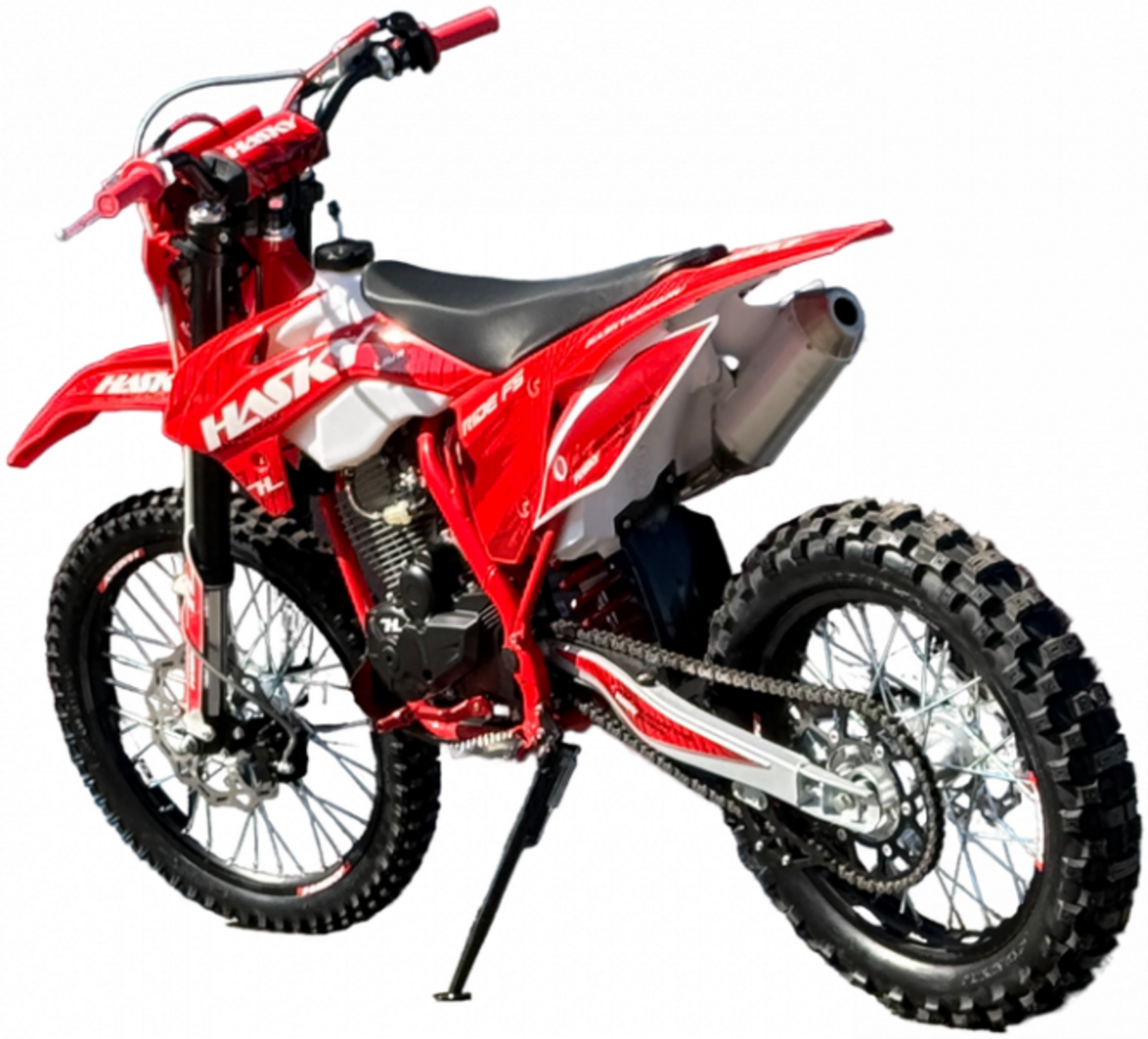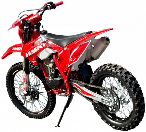Hasky F5 Ride New представляет собой самую доступную модель в линейке бренда, отличаясь от старшей F5 PRO 2025 комплектацией, но сохраняя при этом надежность и качество, присущие семейству Hasky. Этот среднеразмерный эндуро-мотоцикл на колесах 21"/18" построен на прочной раме K5.В основе модели лежит надежный двигатель ZS172FMM, оснащенный балансировочным валом для снижения вибраций, пятиступенчатой коробкой передач и комбинированной системой запуска (электростартер + кик-стартер). Подачу топлива обеспечивает производительный карбюратор Nibbi PE 28. Управляемость и комфорт на бездорожье обеспечивают передняя регулируемая вилка MTN диаметром 43 мм и задний моноамортизатор с прогрессией.Мотоцикл комплектуется передним колесом 21" с покрышкой 80/100-21 и задним 18" с покрышкой 110/100-18, оснащенными фиксаторами. Эргономика управления улучшена за счет новых пультов в стиле KTM, ручки газа Nibbi и грипсы lock-on. Защита двигателя, рамы и перьев повышает долговечность. Дополнительные удобства включают мощную галогеновую фару и счетчик моточасов.Особое внимание уделено безопасности и надежности: воздушный фильтр увеличенной площади изготовлен из негорючего материала, а вся проводка мотоцикла полностью влагозащищенная. Новая усиленная графика придает модели стильный вид. Hasky F5 Ride New предлагает отличное сочетание цены, надежности и оснащения для начинающих и опытных райдеров.