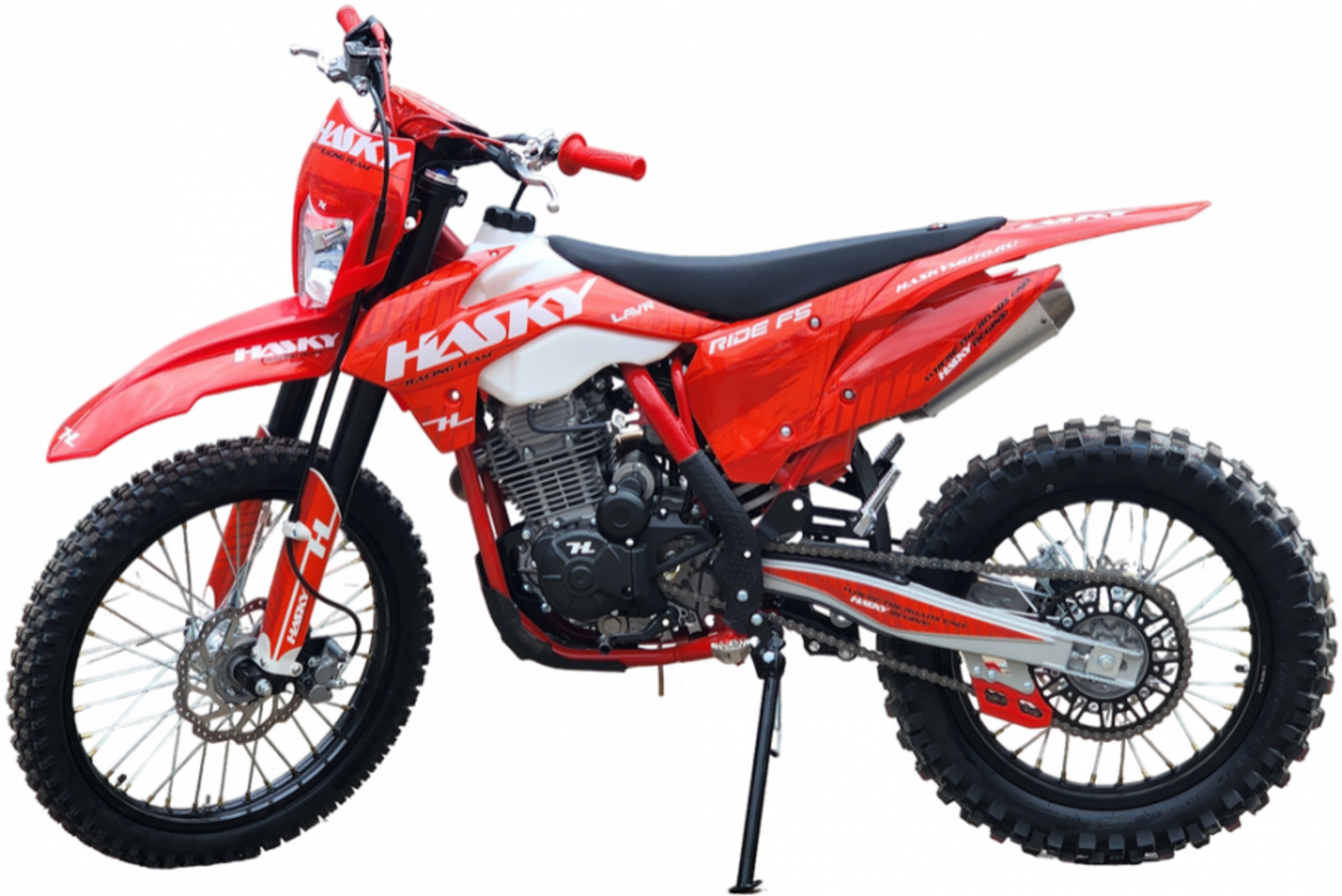 Hasky F5 Ride 2025 представляет собой самую доступную модель в линейке бренда, отличаясь от старшей F5 PRO 2025 комплектацией, но сохраняя при этом надежность и качество, присущие семейству Hasky. Этот среднеразмерный эндуро-мотоцикл на колесах 21"/18" построен на прочной раме K5.В основе модели лежит надежный двигатель Loncin TM300, оснащенный балансировочным валом для снижения вибраций, пятиступенчатой коробкой передач и комбинированной системой запуска (электростартер + кик-стартер). Подачу топлива обеспечивает производительный карбюратор Nibbi PE 30 Race. Управляемость и комфорт на бездорожье обеспечивают передняя регулируемая вилка MTN диаметром 43 мм и задний моноамортизатор.Мотоцикл комплектуется передним колесом 21" с покрышкой 80/100-21 и задним 18" с покрышкой 110/100-18, оснащенными фиксаторами. Эргономика управления улучшена за счет новых пультов в стиле KTM, ручки газа Nibbi и грипсы lock-on. Защита двигателя, рамы и перьев повышает долговечность. Дополнительные удобства включают подножки для пассажира, пеги увеличенной ширины от AJ1, мощную светодиодную фару и счетчик моточасов.Особое внимание уделено безопасности и надежности: воздушный фильтр увеличенной площади изготовлен из негорючего материала, а вся проводка мотоцикла полностью влагозащищенная. В комплект также входит набор инструментов AJ1, а новая усиленная графика придает модели стильный вид. Hasky F5 Ride 2025 предлагает отличное сочетание цены, надежности и оснащения для начинающих и опытных райдеров.