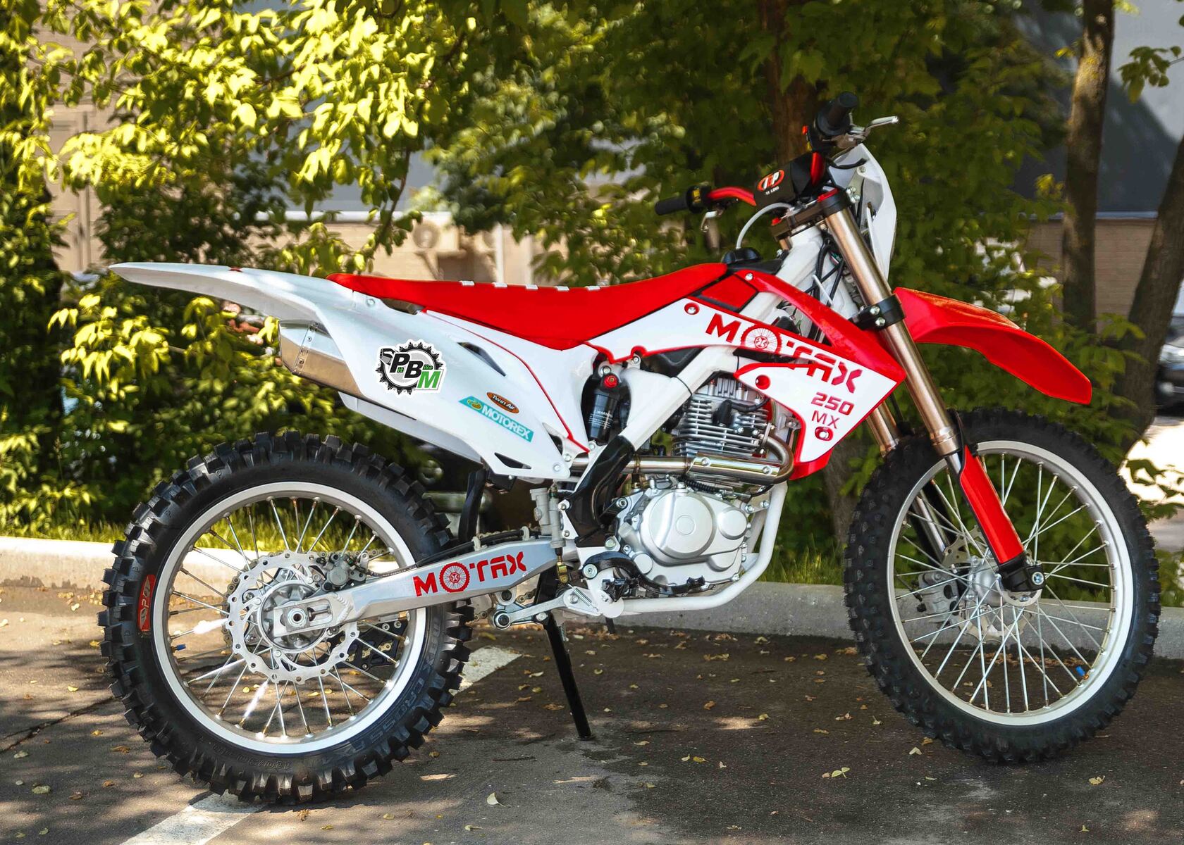 Мотоцикл Motax MX 250 это новинка весны 2021 года Надёжная техника из самых популярных компонентов оснащена Двигателем ZONGSHEN 165FMM с кикстартером и электростартером Мощностью 16 Л.С. на двигателе установлен Карбюратор NIBBI PE28.Это полноразмерный кроссовый мотоцикл. Что позволяет комфортно себя чувствовать райдерам разного роста.За счет сбалансированной базы мотоцикл имеет отличную управляемость, а конструкция рамы и особенности настройки подвески способствуют максимальному поглощению неровностей дорожного покрытия, а так же усиленная прогрессия на игольчатых подшипниках.Алюминиевые обода c буксаторами, усиленными спицами и ступицами. На кроссовой резине Yuanxing 80/100-21 / 100/90-18На мотоцикле установлена обновлённая тормозная система аналог «brembo» с медными колодками , что обеспечивает отличные тормозные характеристики. Особенностью заднего тормоза является, лапка верхнего расположения с эксцентриковой регулировкой.Выпускной патрубок имеет крепления на пружинах для снижения вибрации. Глушитель с уникальным дизайном прямоточного типа, полностью алюминиевый для облегчения веса.