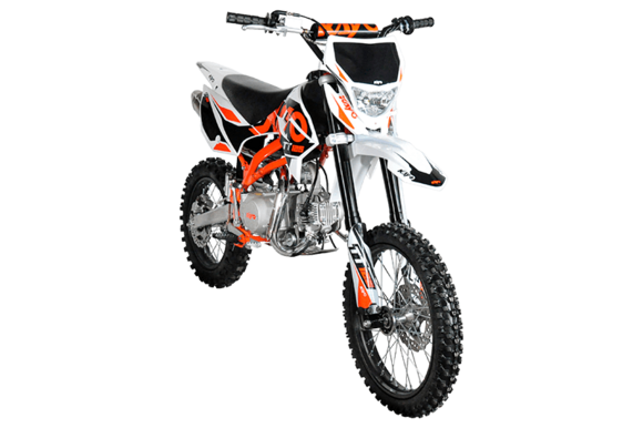 Питбайк KAYO Basic K125 KRZ – идеальный снаряд для наработки первого опыта в мотокроссе и эндуро, который можно использовать на лёгких кроссовых трассах и дорогах с различным покрытием. Удобный, простой и надёжный мотоцикл, который полностью оправдывает свою цену.Одноцилиндровый 4-тактный двигатель воздушного охлаждения 1P54FMI объёмом 125 см3, выдаёт 11 л.с. Карбюратор NIBBI PE19 обеспечивает бесперебойную работу техники в самых жёстких условиях эксплуатации, простоту и лёгкость в обслуживании, а также неприхотливость к качеству топлива. Питбайк имеет вместительный топливный бак на 5,5 л. Запуск двигателя осуществляется с помощью рычага кикстартера.Питбайк оснащён механической 4-ступенчатой коробкой передач с формулой “N-1-2-3-4”.Мотоцикл имеет вес всего 72 кг. Усиленная рама из хром-молибденового сплава и подвеска позволяют эффективно амортизировать удары при езде по неровностям и препятствиям на трассе. Передняя подвеска — телескопическая вилка перевёрнутого типа длиной 770 мм, задняя — моноамортизатор длиной 360 мм. Оба компонента подвески являются нерегулируемыми. Рама и пластик являются собственной разработкой производителя. Мотоцикл оснащён классическими стальными спицованными колёсами диаметром 17 дюймов спереди и 14 дюймов сзади. Эффективное и безопасное замедление с любых скоростей обеспечивают гидравлические дисковые тормоза. Высококачественная износостойкая резина с развитым протектором отлично держит дорогу на различных типах покрытия.Питбайк оснащён яркой светодиодной линзованной фарой, позволяющей кататься в тёмное время суток.Если вы ищете послушный, компактный, динамичный и красивый питбайк, считайте, что вы его нашли. Это один из лучших мотоциклов для обучения и первых шагов в эндуро и мотокроссе. Он отлично подойдёт как для гонок на трассе, так и для обычного катания по пересечённой местности.