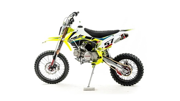 Недорогой надёжный питбайк APEX125 идеален для поездок по грунтовым дорогам и бездорожью. Хорошо чувствует себя на мягком и среднем грунте, разгоняется до 90 км/ч. Оснащён CNC траверсами, фарой, алюминиевыми ободами, весит всего 90 кг. Питбайк прост в управлении и не требует специального ухода, подойдёт как новичкам, так и любителям мотокросса.У кроссового мотоцикла APEX125 отличный узнаваемый дизайн. Конструкция подчёркивает неуступчивый спортивный характер питбайка, который не остановится ни перед одним препятствием. Пластик комбинированный, прочный, не ломается при сгибании. Кроссовый мотоцикл APEX125 доступен в красном и синем цвете, при этом в основной цвет окрашен не только пластик, но и обода колёс и другие детали питбайка.Передняя подвеска — телескопическая нерегулируемая вилка перевёрнутого типа, которая отлично подходит для преодоления ям, ухабов и других неровностей плохих дорог или их отсутствия. Задняя подвеска маятниковая с моноамортизатором. Руль 22 мм с высоким подъёмом и перекладиной удобен для мотоциклистов разного роста. Ручки руля — комфортные PRO TAPER. Питбайк оснащён складными рычагами сцепления и переднего тормоза, а также CNC-лапкой переключения передач.Питбайк весит всего 75 кг, при этом выдерживает вес до 150 кг. Оснащён CNC траверсами, рама полудуплексная стальная, мотоцепь качественная. Колёса спицованные, сделаны из прочного и лёгкого алюминия. Размер заднего колеса — 14 дюймов (350 мм), переднего — 17 дюйм (430 мм). Тормоза дисковые, передний тормозной суппорт двухпоршневой, задний — однопоршневой.Питбайк оснащён карбюратором с фильтром нулевого сопротивления VM22 MIKUNI и одноцилиндровым четырёхтактным двигателем с воздушным охлаждением. Надёжный мотор мощностью 9 л. с. и объемом 125 см³ разгоняет кроссовый мотоцикл APEX125 до 90 км/ч. Коробка передач механическая, четырёхступенчатая. Система зажигания электронная (CDI), для запуска двигателя можно использовать кикстартер и электростартер.СверхпроходимостьПокрышки с шипами и высоким грунтозацепом идеальны для бездорожья. Мощность мотора и небольшой вес питбайка позволяют ему преодолевать значительные препятствия и непролазную грязь, хорошо заходить в подъёмы.Для поездок при низкой видимости и в ночное время суток питбайк оснащён фарой, которая включается при повороте замка зажигания (1 – выключить, 2 – включить, 3 – свет). Также в комплекте есть щиток для номера, который ставится вместо фары.Питбайк 125 относится к недорогим моделям, которые при должной эксплуатации работают без сбоев и капризов. Кросс неприхотлив в обслуживании, не занимает много места в гараже. При необходимости в нём легко сменить любую повреждённую деталь. Купить питбайк 125 вы можете в официальном магазине Мотолэнд, здесь же всегда можно приобрести запасные детали и комплектующие, которые стоят недорого и всегда есть в продаже. При покупке питбайка не забудьте о защитной экипировке.