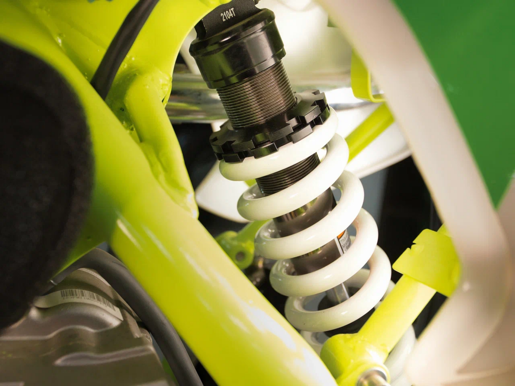 Подвеска передняя Телескопическая вилка перевёрнутого типа (с регулировкой по давлению воздуха).