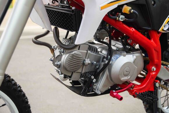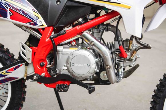 WELS TEAM 125 оснащён надёжным двигателем YX 125. Установлена выхлопная система в стиле Akrapovič, также противоскользящее сиденье и силиконовый колпачок на свечи зажигания.Надёжные и прочные алюминиевые диски !Данная модель оборудована электростартером. Из-за легкого веса питбайк очень прост в эксплуатации.Отлично подойдёт как новичкам, так и опытным райдерам.Питбайк уже укомплектован всем необходимым: в базовую версию входит фара, щиток под стартовый номер, замок зажигания, фрезерованная алюминиевая крышка бензобака, буксаторы на оба колеса и комплект CNC деталей.