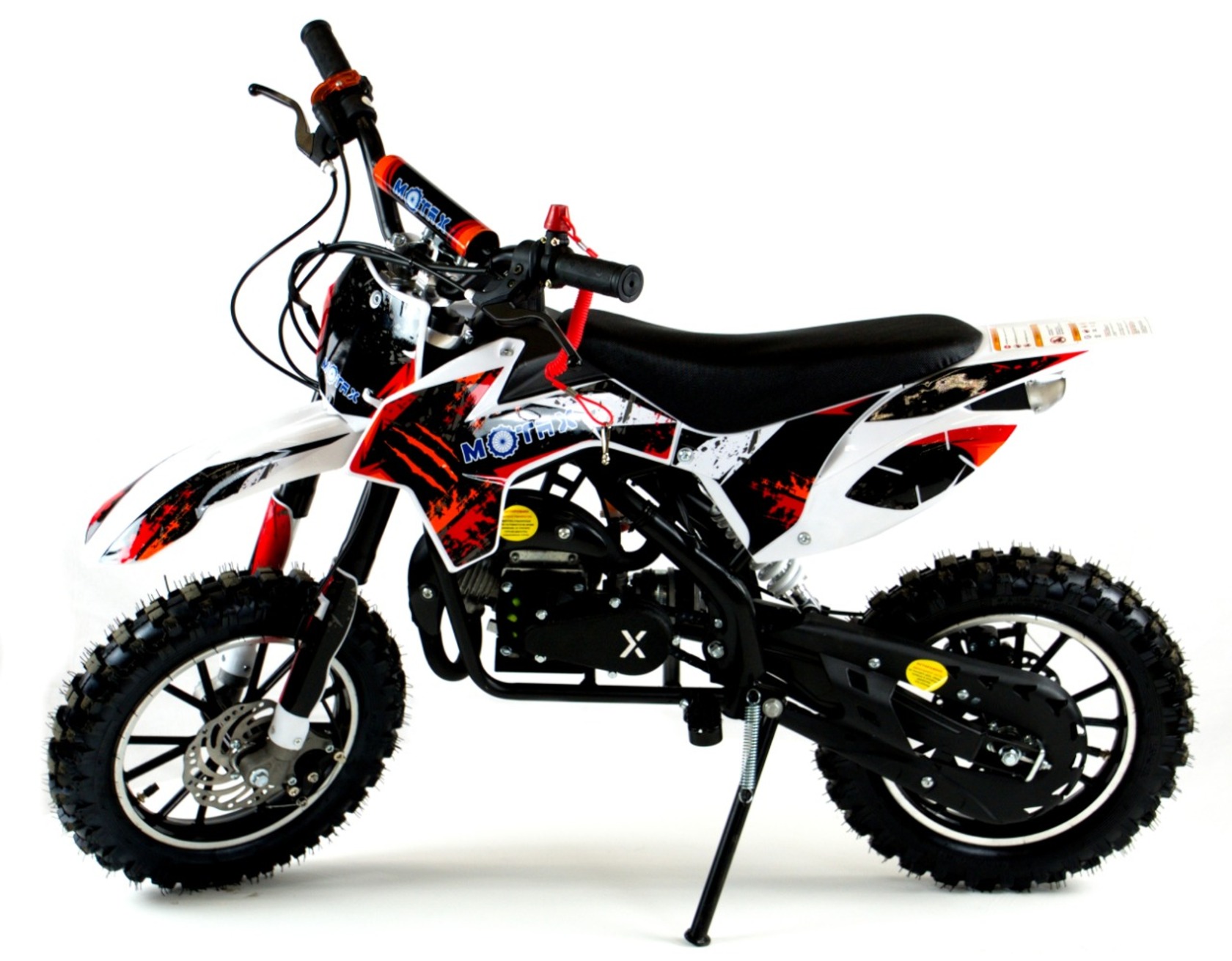 MOTAX Мини-кросс 50 сс с электро стартером - это бензиновый мотоцикл, с колёсами диаметром 10 дюймов и компактным, бензиновым, двухтактным двигателем оборудованным дополнительным электрическим стартером. Он отлично подойдёт для ребёнка от 4 до 8 лет.Огромное преимущество этого мотоцикла перед питбайкаии и аналогами и с четырёх тактным двигателем, это в два раза меньший вес! Который составляет не более 25 кг. Это огромный плюс для вашего ребёнка при освоении первых навыков управления, настоящим бензиновым мотоциклом. Конструкция этого мотоцикла предельно проста и надёжна, это обуславливает отсутствие расходов на содержание и эксплуатацию. Он имеет механический ограничитель скорости на ручке газа, кнопку быстрого глушения двигателя и страховочную чеку, для глушения мотора.Помимо электрического стартера, в базовой комплектации мотоцикл оборудован механическим, ручным стартером с механизмом легкого запуска. За счёт этого механизма, существенно снижено усилие при запуске двигателя, с этой задачей может справиться и ребенок. Шины диаметром 10 дюймов установлены на легкосплавные диски, тормоза дисковые, механические спереди и сзади, на двигателе установлен понижающий редуктор, для обеспечения хорошей тяги и большего крутящего момента, цепной привод хорошо защищён пластиковой защитой, роль трансмиссии выполняет фрикционное сцепление центробежного типа.Все это позволит вашему ребёнку окунуться в интереснейший мир мотоциклов, с комфортом и за совершенно небольшую стоимость! Купить миникросс и получить консультацию Вы можете в нашем магазине.