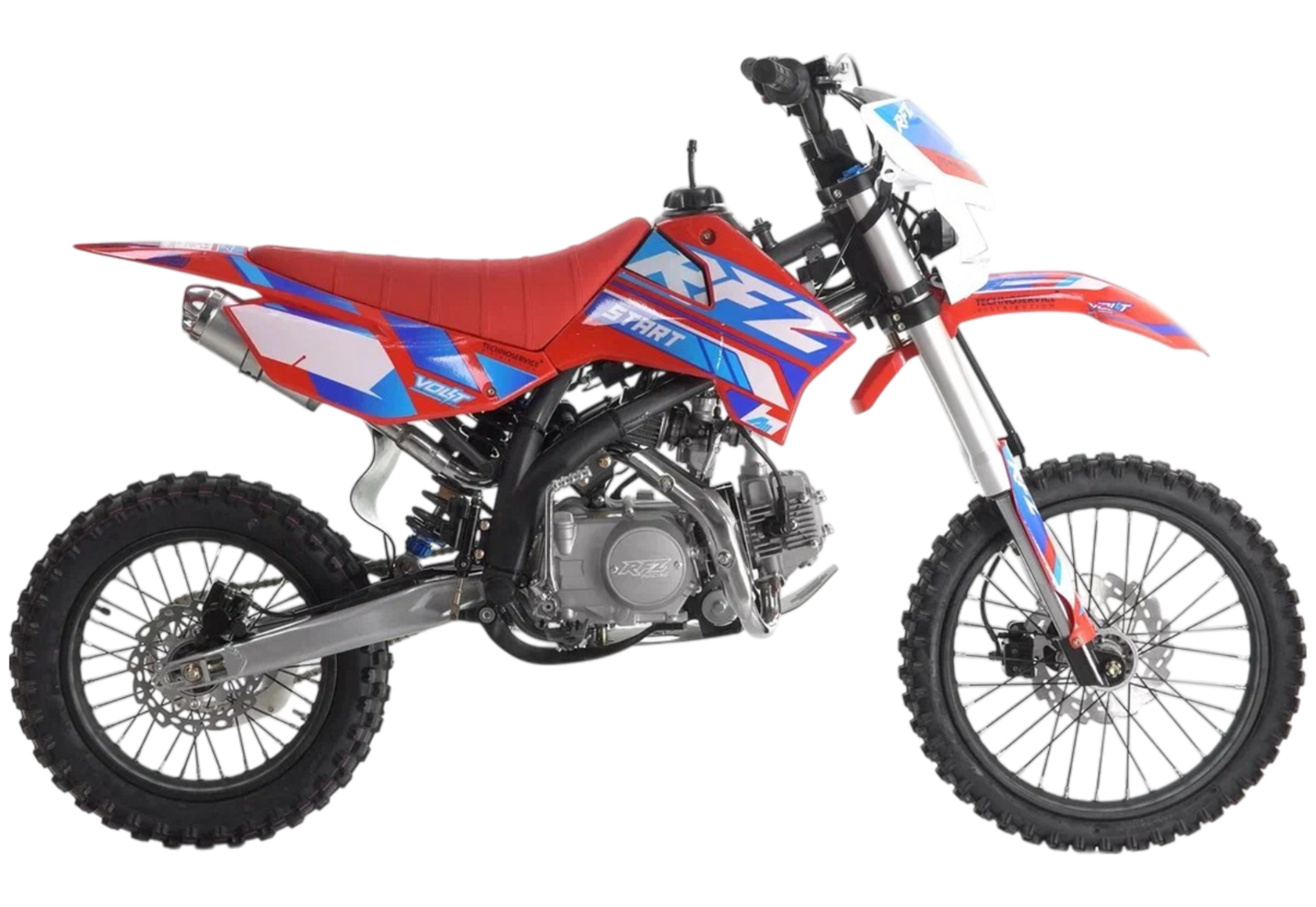 Питбайк Apollo RFZ Start 125X-LE — это отличный вариант для тех, кто хочет познакомиться с миром мотоспорта. Этот мощный и компактный мотоцикл идеально подходит для начинающих, предлагая сочетание производительности и удобства в управлении.Под капотом Apollo RFZ Start 125X-LE установлен двигатель YX125e с воздушным охлаждением и карбюратором Nibbi PE19. С объемом 120 куб. см он развивает мощность в 11 л.с., что обеспечивает отличную динамику для новичков. Питбайк оснащен как кик-, так и электрическим стартером, что упрощает запуск в любых условиях.Этот мотоцикл имеет стальную раму, что гарантирует прочность и надежность. Передняя подвеска VOLT V-ONE высотой 750 мм и регулируемая задняя подвеска VOLT V-Force обеспечивают отличную управляемость на различных покрытиях. Колеса размером 17x14 дюймов с дисковыми тормозами (передний 220 мм и задний 180 мм) обеспечивают уверенное торможение и стабильность.С высотой по седлу 840 мм и дорожным просветом 330 мм, Apollo RFZ Start 125X-LE подходит для райдеров от 160 см роста и старше 12 лет. Мотоцикл не имеет ПТС, делая его идеальным для частных заездов и тренировок.