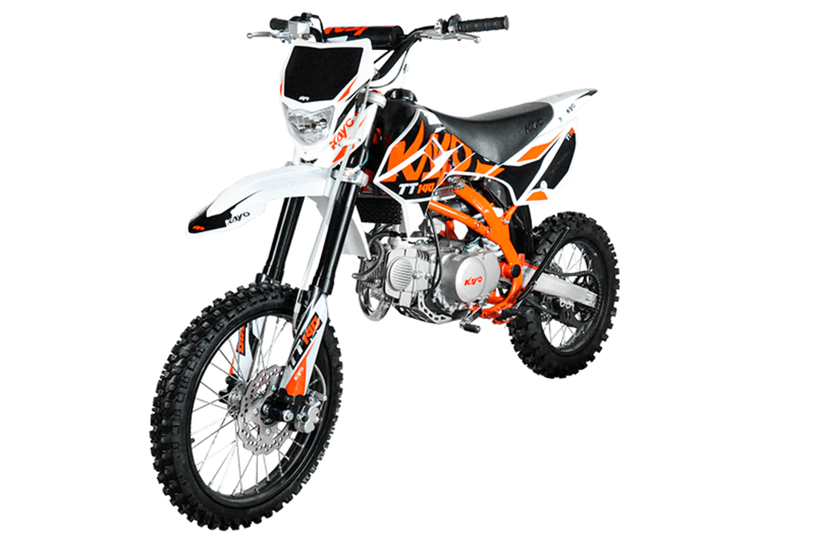 Питбайк KAYO Basic TT140 17/14 KRZ отлично подходит для освоения начального уровня в мотоспорте и утилитарных поездок по бездорожью. Обладает превосходной управляемостью, хорошей производительностью и высокой надёжностью.Оснащён одноцилиндровым 4-тактным двигателем YX1P56FMJ объёмом 140 см3 с воздушно-масляным охлаждением. Выдаёт мощность в 13 л.с. Карбюратор NIBBI PE19 обеспечивает бесперебойную работу техники в самых жёстких условиях. Лёгок в обслуживании и неприхотлив к качеству топлива. Имеет механическую коробку передач с 4 ступенями и схемой N-1-2-3-4. Запуск двигателя осуществляется с помощью рычага кикстартера. Ёмкость бака 5,5 литра.Питбайк оснащён классическими спицованными колёсами диаметром 17 и 14 дюймов, обутыми в агрессивную кроссовую резину. Подвеска спереди представлена телескопической вилкой перевёрнутого типа длиной 770 мм, а сзади – моноамортизатором длиной 360 мм. Тормоза дисковые гидравлические.Размер 1780х750х1120 мм, вес 73 кг. Высота по седлу 885 мм.Мотоцикл оснащён светодиодной оптикой, позволяющей устраивать заезды даже в тёмное время суток.