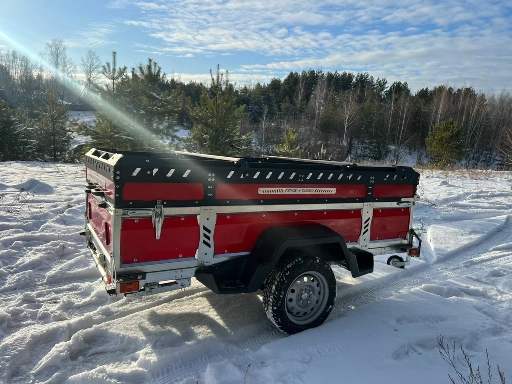 Прицеп VOYAGE Classic 3,0 Бортовой, туристическая крышка с багажником, высота внутри 530 (ш. 1,3; д. 3,0)