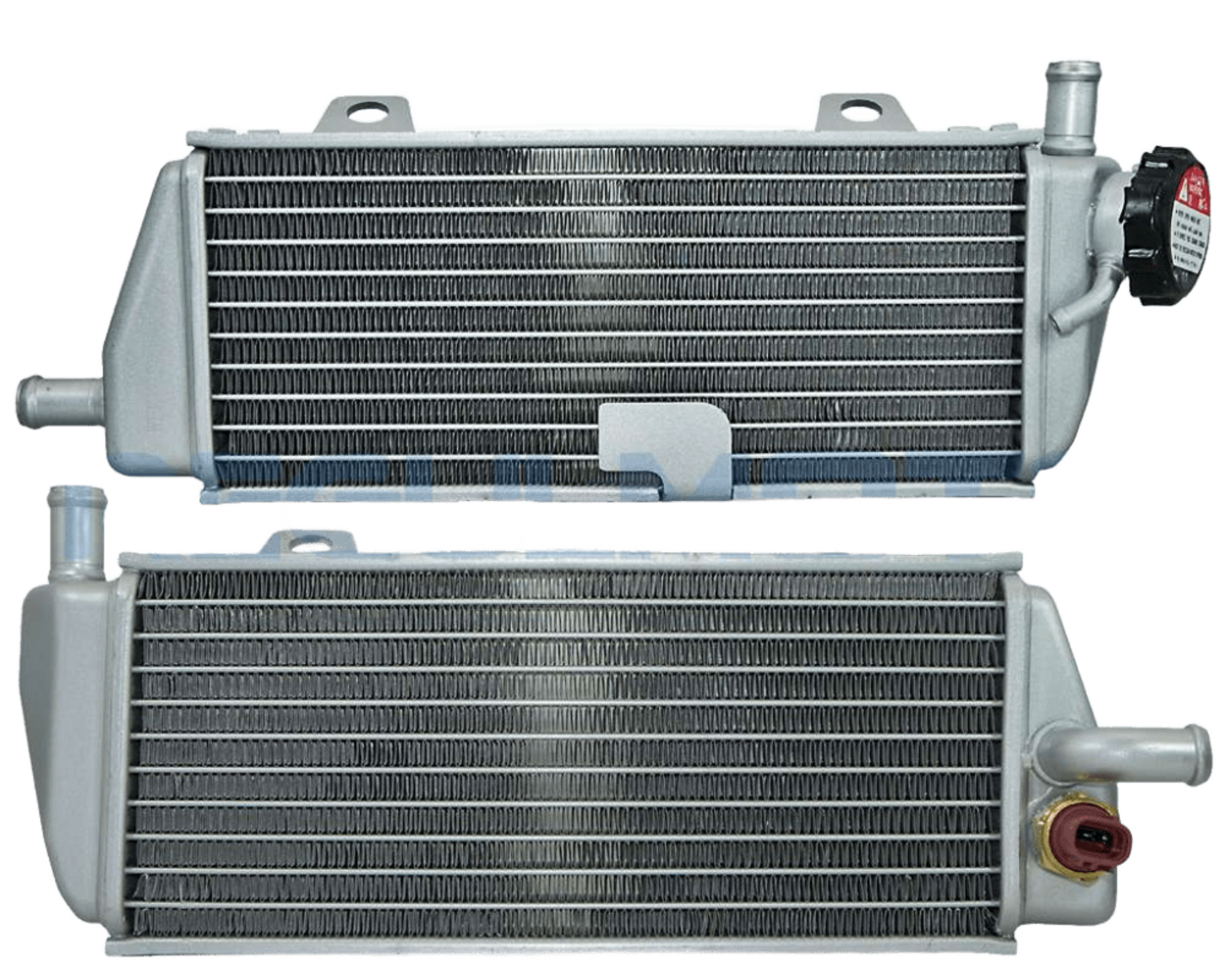Данная система радиаторного охлаждения устанавливается двигатели мотоциклов Regulmoto Crosstrec 300, обеспечивая эффективных отвод тепла и стабильный температурный режим работы ДВС этих популярных внедорожных байков. Купить радиаторы охлаждения двигателя мотоциклов Regulmoto Legend 300 с доставкой в необходимый вам регион РФ вы сможете после оформления онлайн-заявки на сайте или связавшись с менеджерами нашего магазина.Внедорожные мотоциклы Regulmoto Legend 300 оснащаются достаточно производительным двигателем Zongshen с системой жидкостного охлаждения цилиндро-поршневой группы. Эти модели внедорожных байков доступны широкому кругу любителей поездок по пересеченной местности и бездорожью, отличаются выраженным спортивным характером и пользуются большой популярностью.В комплект входят все элементы системы охлаждения, необходимые для простой и быстрой установки взамен вышедших из строя стоковых элементов: два радиатора, расширительный бачок системы, вентиляторы принудительного охлаждения, запуск которых осуществляется при превышении порогового значения температуры охлаждающей жидкости, определяемой при помощи термодатчика.