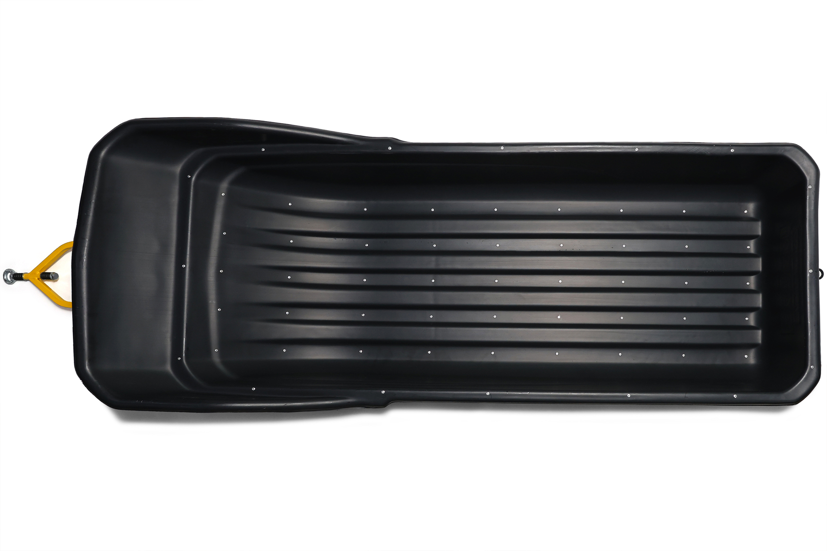 Преимущества конструкции. Узкое дно шириной 550 мм обеспечивает отличную проходимость по глубокому снегу Сбалансированная геометрия корпуса гарантирует устойчивость на сложном рельефе Увеличенная высота бортов 490 мм позволяет перевозить высокие грузы Накладные полозья увеличивают срок службы и значительно улучшают скольжение в любых условиях