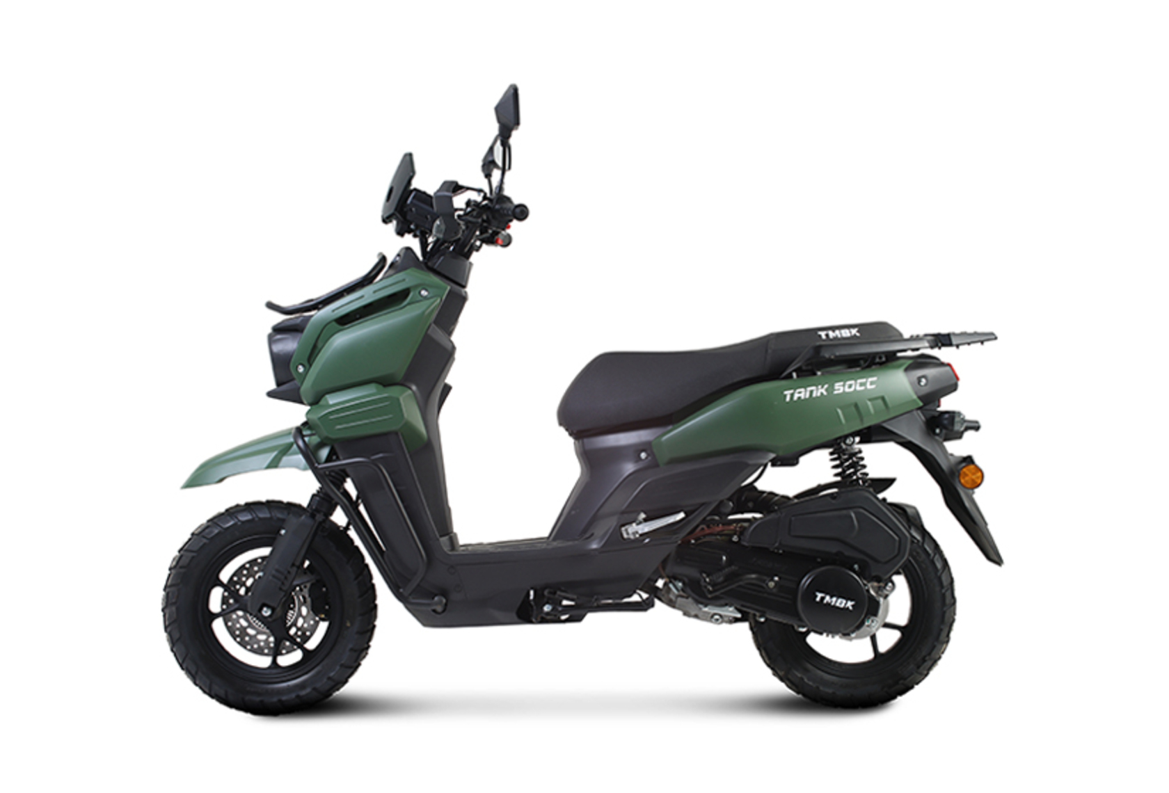 TMBK TANK — это не просто скутер, а настоящий городской вездеход, готовый к любым приключениям. Он спроектирован для того, чтобы с легкостью справляться с колдобинами и ухабами города, а также для поездок за его пределы, где нет асфальта, но есть желание двигаться вперед.TANK — ваш идеальный спутник, который будет незаменим как в повседневных городских поездках, так и в более длинных путешествиях. Мощный, надежный и с отличной грузоподъемностью, он готов выполнить любую задачу — от утренней поездки за хлебом до путешествия по бездорожью и даже кругосветного турне.Мощность и экономичностьСкутер TMBK TANK оснащен мощным, но экономичным двигателем, который обеспечивает отличную динамику в городских условиях и уверенность на сельских дорогах. Благодаря низкой степени сжатия мотора, ваши поездки будут не только быстрыми, но и экономными — минимальный расход топлива позволяет не думать о заправках, наслаждаясь каждой минутой дороги. Это идеальное сочетание мощности и экономии!ГрузоподъемностьTMBK TANK — это скутер, который точно оценит каждый, кто часто перевозил грузы. К стандартному вместительному отсеку под сиденьем добавляются дополнительные возможности: площадка для кофра и небольшой багажник над фарой. Площадка расширяет грузовой потенциал, а багажник позволяет быстро зафиксировать мелкие вещи, не перекрывая важные световые приборы. Все продумано до мелочей, чтобы обеспечить вам максимальный комфорт и удобство при перевозке всего необходимого.Защита и комфортTMBK TANK не только справляется с любыми дорогами, но и защищает вас в любых условиях. Дополнительные дуги безопасности защищают пластиковые элементы при падении, а защита рук спасет вас от грязи, веток и камней на бездорожье, гарантируя комфорт в любую погоду — будь то дождь, ветер или снег. Ваши руки всегда будут защищены, даже в самых сложных условиях.ДизайнУникальный утилитарный дизайн не только выделяет TMBK TANK на фоне других скутеров, но и способствует повышенной проходимости. TANK с легкостью преодолевает любые препятствия, будь то неровности на дорогах, грязь или песок. Эта модель скутера идеально подходит для поездок по всем видам дорог и станет вашим лучшим другом как в городе, так и за его пределами.TMBK TANK — ваш верный спутник в любых путешествиях, который обеспечит удобство, комфорт и уверенность на каждом километре дороги. Готовы к новым приключениям? Тогда TMBK TANK ждет вас!