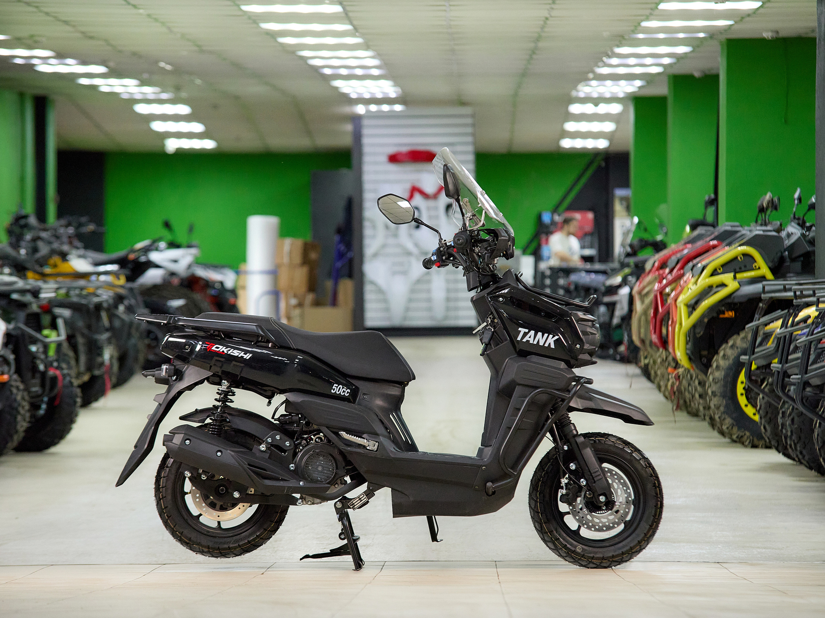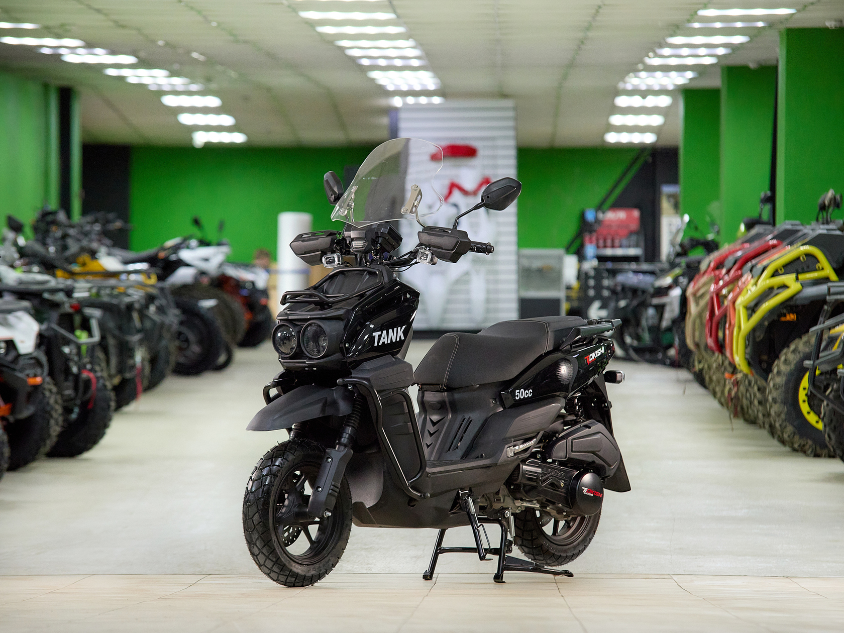 Познакомьтесь с эволюцией легенды! Третье поколение культового турэндуро скутера сочетает в себе все лучшие черты предшественников — мощный 170-кубовый двигатель, не требующий прав категории «А», и готовность к любым дорогам — с совершенно новым агрессивным дизайном. X-образная фара, белоснежный окрас и фирменный стиль Tokishi выделят вас из толпы и в городе, и на бездорожье.