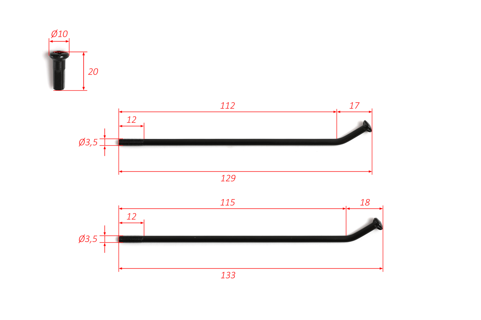 • Комплект усиленных спиц для заднего колеса R12 на питбайк, изготовленный из прочной стали с надёжным антикоррозийным чёрным покрытием. Предназначены для использования в условиях повышенных нагрузок, а также при тюнинге и ремонте мототехники.