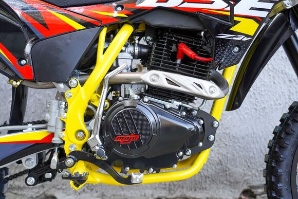 BSE RUSSIA представляет новинку 2024 - модель Z3 V!Бестселлер среднеразмерного сегмента BSE Z3 V обзавелся вариацией двигателя Zonsen ZS172FMM-5 с балансирным валом! Теперь минимум вибраций!Двигатель Z3 V: тяговитый 4-х тактный Zonsen ZS172FMM-5 (PR250) c балансирным валом. Рабочий объём: 250cc, 2-клапанная ГБЦ, воздушное охлаждение, мощность 21 лс. Легко контролируемая подача мощности благодаря карбюратору Nibbi Racing PE30 и отличный отклик дроссельной заслонки на короткоходную ручку газа. Коробка передач – механическая 5-ступенчатая, запуск – электростартером и кикстартером. Мотор очень эластичный, с отличными показателями крутящего момента на низких и средних диапазонах. А легендарная надежность завода моторов ZONSEN, удобство в обслуживании и доступность запчастей в представлении не нуждается!Среднеразмерный эндуро Z3 V готов на любые приключения! Мотоцикл оснащается стальная рамой повышенной жёсткости BOSUER с усилителями и алюминиевым мятником. Подвеска – регулируемая Mojo Standard с большими ходами помогает отрабатывать даже самые жесткие приземления, с лёгкостью "глотая" все неровности. Установлена прогрессия задней подвески. Мощная гидравлическая тормозная система HSK RACING остановит ваш мотоцикл максимально эффективно.Комфорт. Его на BSE Z3 V в избытке: полностью светодиодная фара головного света с 5 модулями и полоской дневного хода, задний стоп сигнал, USB зарядка, электростартер, удобное сиденье, широкий спортивный алюминиевый руль. Благодаря ЖК приборной панели и датчику моточасов вы всегда будете знать о всех главных параметрах мотоцикла. Металлическая зашита рук, задний багажник, буксаторы на усиленных ободах. Z3 V 21/18 в стандарте обут в «зубастые» покрышки Yanxing, спереди: 80/100- 21, сзади: 110/90 -18. Z3 V точно не спасует в условиях серьезного бездорожья.Компактный, легкий, с минимальным и вибрациями и фантастической управляемостью -отличный выбор для райдеров начального и среднего уровня. Чрезвычайно удачный, сбалансированный и комфортный мотоцикл. Современный яркий дизайн пластика. Z3 V доступен в нескольких цветовых решениях и в двух вариантах размерности колес: 21/18 или 19/16. Особое внимание на расцветку Red Twist – это первый BSE с желтой рамой!