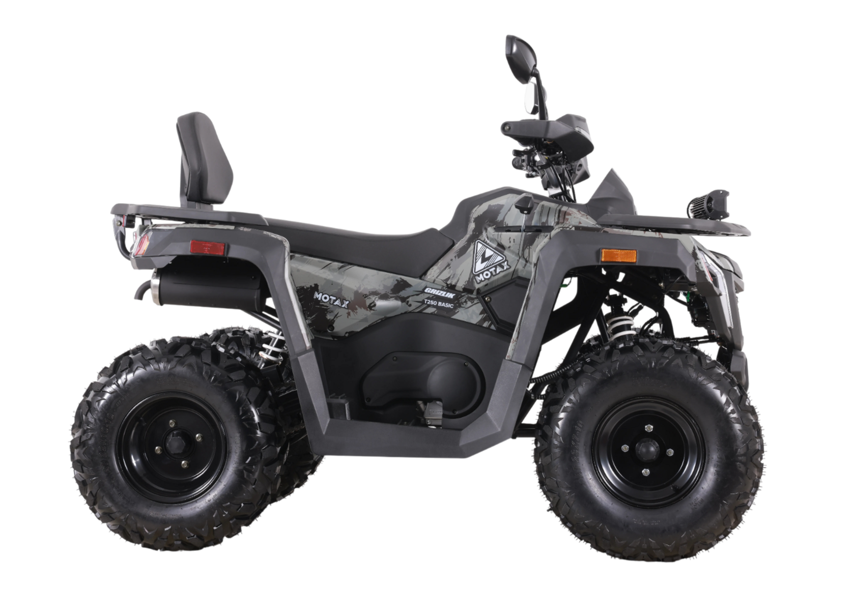 Квадроцикл MOTAX GRIZLIK T250 BASIC — это идеальный выбор для тех, кто ищет надежное и мощное транспортное средство для активного отдыха. С бензиновым 4-х тактным двигателем объемом 200 см³ и мощностью 16,9 л.с., он обеспечивает отличную производительность на различных типах местности.