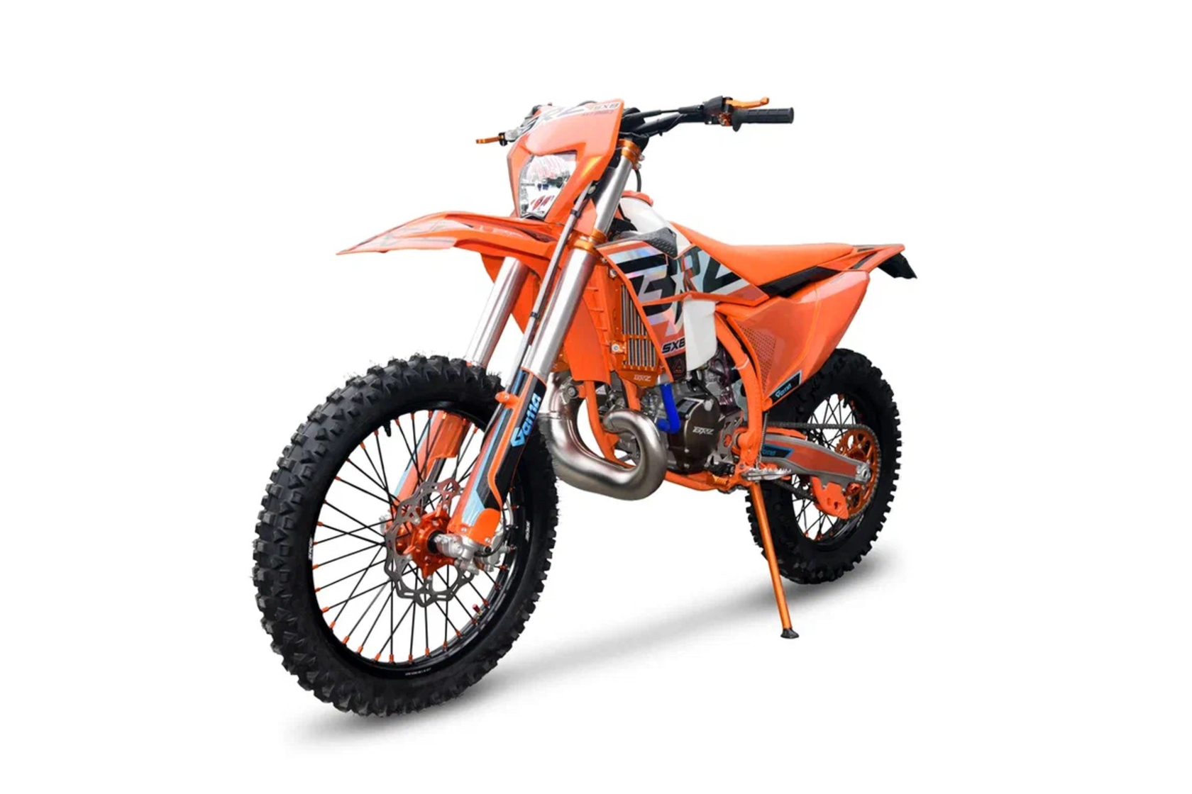 • Размер и тип колес– 21х18 обода усиленные алюминиевые, сплав 7 серии, фрезерованные ступицы ККЕ. Передняя покрышка GEMA F-ENDURO 90/90-21. Задняя покрышка GEMA EX SUPER SOFT 140/80-18.
