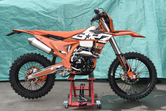 • Размер и тип колес – 21х18 обода алюминиевые, ККЕ, сплав 7 серии. Фрезерованные ступицы. Передние покрышки GEMA F-ENDURO 90/90-21, задние GEMA EX SUPER SOFT 140/80-18.