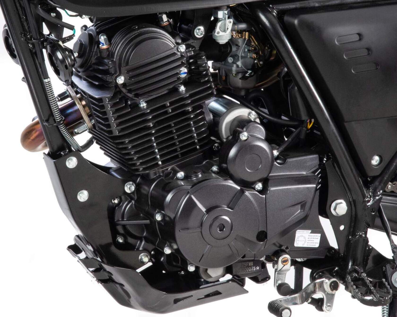 LEGEND 300 – является стильным мотоциклом с достойными характеристиками в бюджетной категории. Дизайн мотоцикла выполнен в гоночном ретро стиле, укомплектованный современной LED оптикой, приборной панелью, титановым выхлопом, креплением номерного знака и прочими канонами современности.Низовой покладистый мотор, классическая посадка, мягкое рифлёное сидение и спицованные колеса – всё это способствует комфортному управлению по асфальтированным дорогам и пересеченной местности.LEGEND 300 был спроектирован как универсальный мотоцикл, для райдеров любых возрастов. На нём будет комфортно в городе, посёлке, деревне, поле и даже в лесу.Мотоцикл оснащен двигателем 175FMM-5 (баланс. вал) с 6 ступенчатой коробкой передач, мощностью 25 л.с. Впуск оснащен карбюратором Keihin PZ30, выпуск – титановым выхлопом от Motoland.Установлена металлическая защита картера, алюминиевые крылья и защита цепи, усиленный толстостенный руль и усиленная 520 цепь.