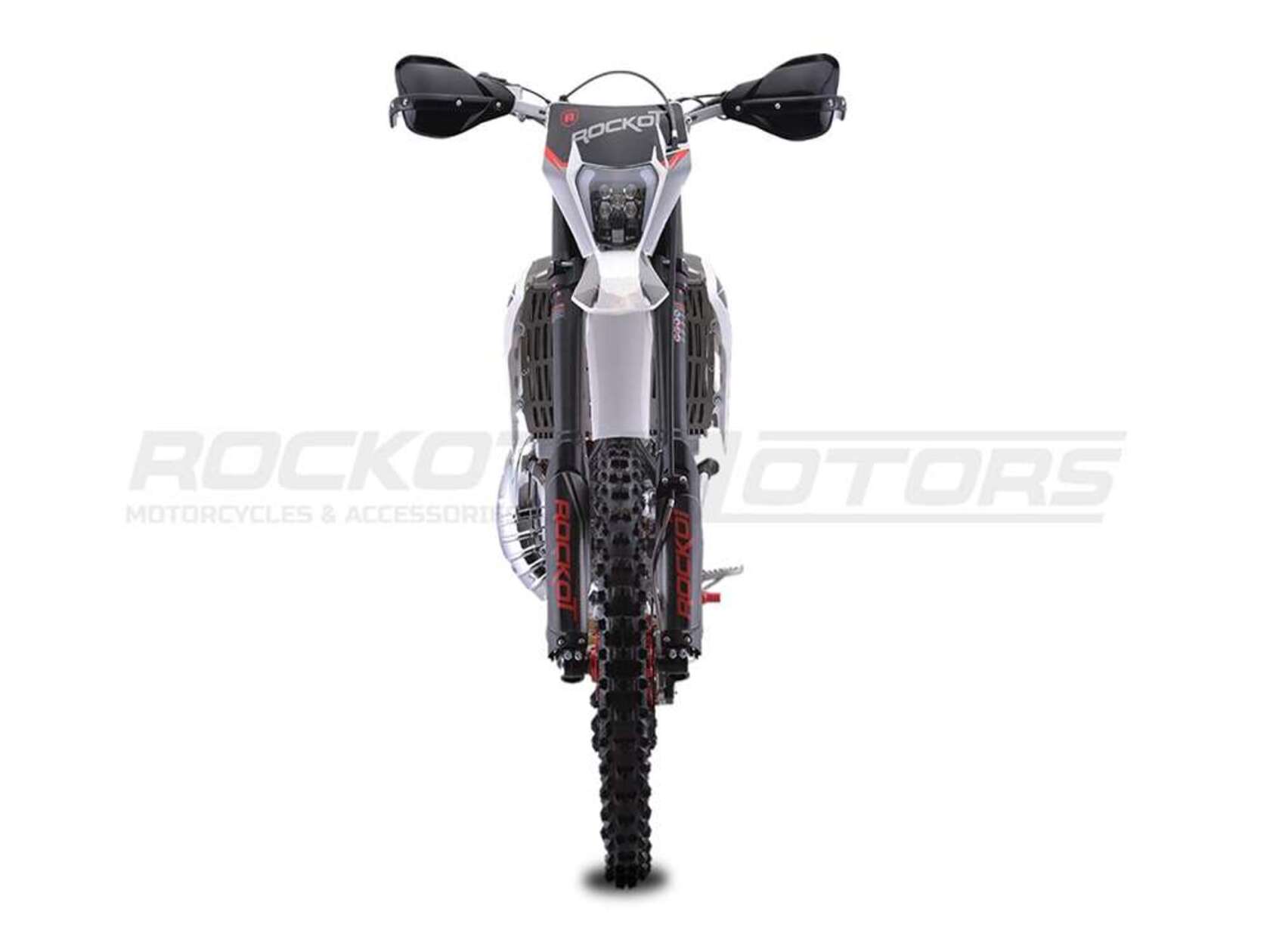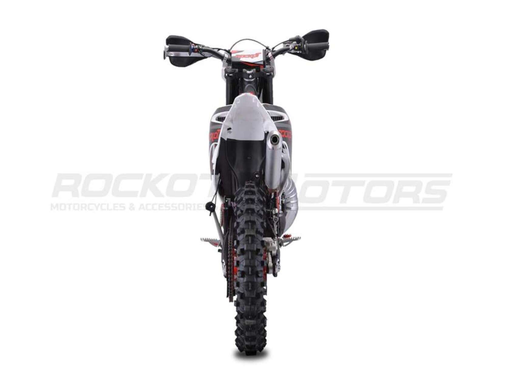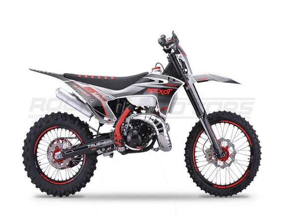 ROCKOT GS FIVE - новая ветвь развития в линейке эндуро мотоциклов ROCKOT. Мощный двухтактный двигатель, легкая и прочная рама, картриджная регулируемая подвеска - лишь часть достоинств данного мотоцикла. ROCKOT GS FIVE был создан на основе нашего многолетнего опыта в проектировании мотоциклов и быстрорастущем стремлении начинающих мотоспортсменов побеждать.Как уже принято, в лучших традициях линейки GS Series - мотоцикл выполнен в пластике “GASGAS”.ROCKOT GS FIVE получил обновленную фару типа KTM с пятью светодиодными линзами и габаритными огнями новой формы.GS FIVE привлекает внимание сочетанием максимального контраста цветов черного, красного и серого титана.Облицовка из белого пластика, выглядит единым целым вместе с топливным баком того-же белого цвета.Двигатель, рама, подвеска и колесные диски, окрашены в глубокий черный цвет, на фоне которого так эффектно выделяются тюнинговые элементы и графика яркого красного цвета.Делает дизайн завершенным и указывает на принадлежность мотоцикла к серьезным эндуро испытаниям - большое количество тюнинговых и защитных деталей.Полностью гидравлическая тормозная система с армированной гидролинией. Спереди установлен двухпоршневый суппорт, сзади - однопоршневый. ROCKOT GS FIVE имеет тормозные диски увеличенного диаметра: 270 и 240 мм..
