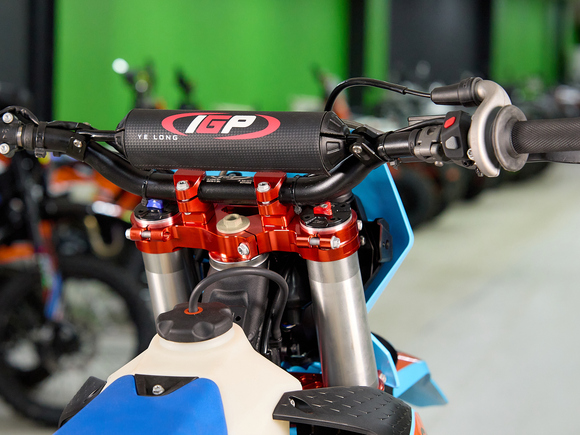 Мотоцикл GR8 F300A (4T CB300RL) Enduro Optimum – отличный снаряд для внедорожного экстрима. Обладает оптимальным балансом мощности, надёжности и управляемости. Мотоцикл приспособлен для суровых условий эндуро заездов. Он готов справиться с любыми маршрутами, которые вы предложите.Одноцилиндровый 4-тактный двигатель CB300RL ZS175FMN с 4 клапанами имеет объём 271 см³, что позволяет достичь мощности в 27 л.с. Для подачи топлива используется карбюратор NIBBI PWK32. Он обеспечивает бесперебойную работу в самых жёстких условиях, прост в обслуживании и неприхотлив к качеству топлива. За поддержание оптимальной температуры отвечает воздушное охлаждение. Механическая коробка передач имеет 5 ступеней и схему 1-N-2-3-4-5. Объём топливного бака 8 литров.На мотоцикле используются колёса диаметром 21 и 18 дюймов, обутые во внедорожные покрышки с агрессивным протектором. Регулируемая подвеска SZC Optima обеспечивает хорошую амортизацию и высокую проходимость. Спереди представлена телескопической вилкой перевёрнутого типа длиной 940 мм, а сзади установлен моноамортизатор длиной 480 мм. Регулируется на сжатие и отбой. За торможение отвечает дисковая гидравлическая система с суппортами SZC. Передний тормозной диск оснащён защитным кожухом.У мотоцикла имеется яркая фара для заездов в тёмное время суток.Габариты 2200х920х1300 мм, вес 116 кг. Высота по седлу 930 мм.Комплектация и внешний вид мотоцикла могут отличаться в зависимости от поставки. Изображение на сайте не гарантирует наличие тех или иных опций. Уточняйте информацию при оформлении заказа.