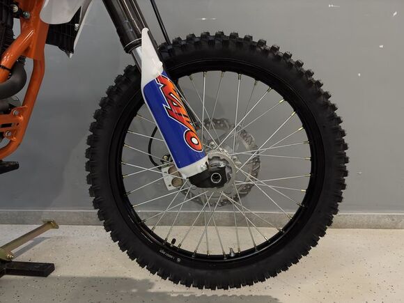 Мотоцикл кроссовый KAYO K4 MX - популярный внедорожный мотоцикл известного китайского производителя, завоевавший признание тысяч довольных владельцев. Обновленная версия отличается оптимально сбалансированной комплектацией и большими возможностями практического использования. KAYO K4 - это отличный выбор для райдеров с опытом, позволит совершенствовать навыки управления внедорожной мототехникой и получать весь спектр эмоций от поездок по бездорожью.В мощной раме KAYO K4 MX устанавливается надежный и неприхотливый 4-тактник воздушного охлаждения ZS172FMM с 5-ступенчатой коробкой передач. Этот мотор отличают отличная производительность и стабильные рабочие характеристики в широком диапазоне оборотов. Максимальная развиваемая мощность силовой установки, в тракте подготовки топлива которой задействован карбюратор NIBBI PE30, составляет 21 лошадиную силу.Подбор компонентов подвески мотоцикла продиктован условиями использования техники: длинноходные амортизаторы с регулировками рабочих характеристик установлены как в траверсах передней вилки перевернутого типа, так и на заднем маятнике с системой прогрессии. Алюминиевые диски колес размерности 21/18 дюймов оснащены буксаторами и комплектуются внедорожной резиной с выраженными грунтозацепами протектора.За безопасность эксплуатации отвечает надежная и производительная дисковая гидравлика тормозной системы: на переднем колесе установлен двухпоршневой тормозной суппорт, на заднем - однопоршневой. Высота по седлу KAYO K4 MX составляет 850 миллиметров - на байке с комфортом будут себя чувствовать как люди среднего роста, так и высокие райдеры.