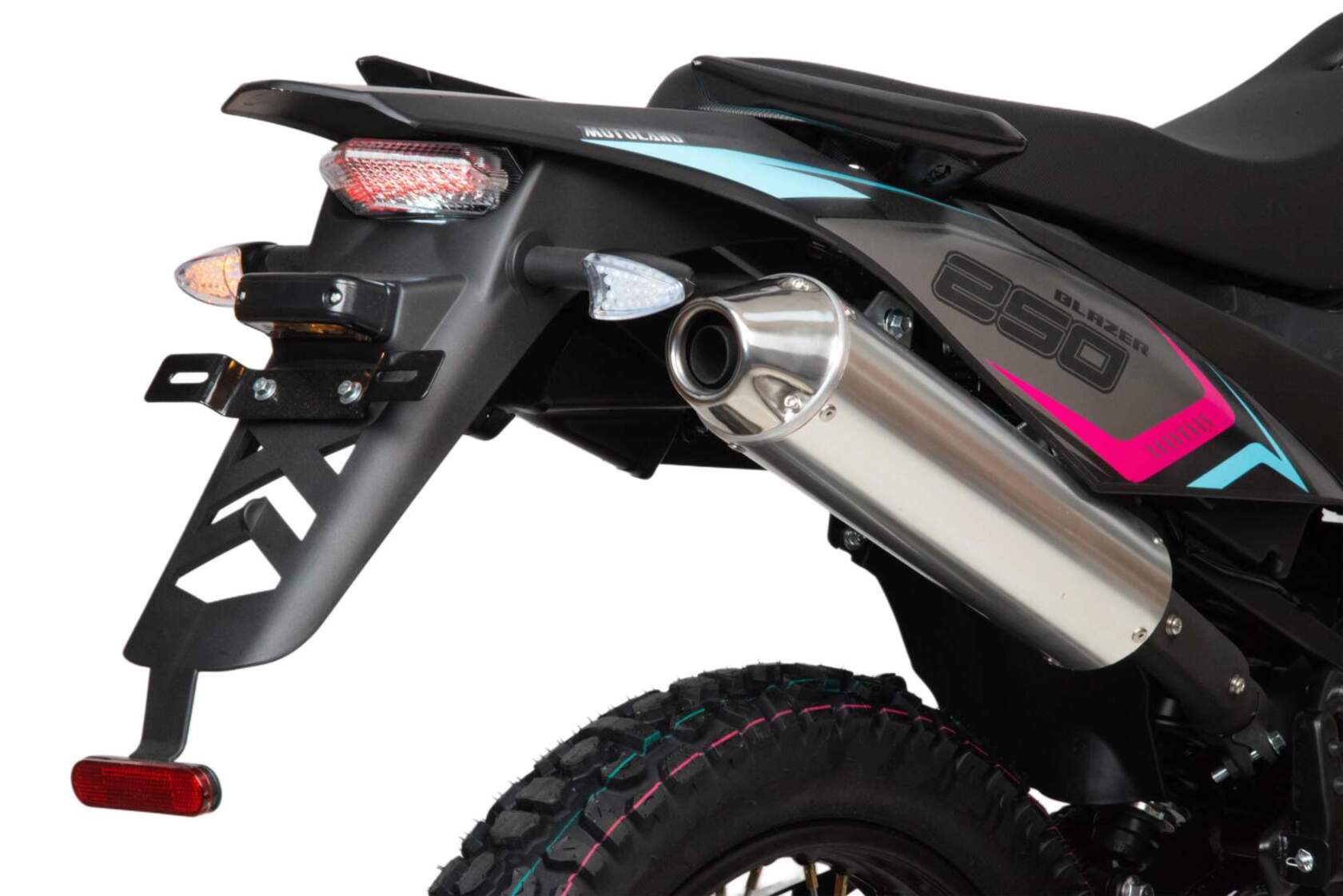 Motoland BLAZER 250 - отличный эндуро-мотоцикл по доступной цене. Двигатель 169FMM, мощностью 16 л.с., усиленную «перевернутую» переднюю вилку, защиту двигателя и рук, LCD-панель, светодиодные поворотники и стоп-сигнал и кроссовую фару.Переднее колесо 2.75-21, заднее колесо 4.0-18.мотоцикл двойного назначения – для асфальта и легкого бездорожья.Наличие ПТС дает возможность легально передвигаться по городским улицам и дорогам общего пользования, внедорожные качества позволяет без особых усилий преодолевать бездорожье. Как видите, за довольно символическую цену вы получаете полноценный эндуро мотоцикл. После небольшой доработки мотоцикла, его свободно можно использовать для эндуро рейдов.Blazer 250 отлично подойдет как опытным любителям эндуро, так и начинающим.Мотоцикл маневренный и потрясающе удобный в городе, из за своей узкой и высокой формы, способный пролезть даже в минимальные зазоры между стоящими в пробке автомобилями. , внедорожные качества позволяет без усилий преодолевать грязь и трудопроходивые места .Мягкое сидение для 2-х пассажиров и подножки пассажира для удобных совместных поездок.Тихий городской глушитель, который не доставит вам дискомфорта.Скромный расход топлива, который почти не зависит от того, с какой скоростью едет мотоцикл и на каких оборотах работает двигатель, в среднем это 3,2-3,5 л на 100 км.Мотоцикл прост в управлении и неприхотлив в обслуживании. Подходит мотолюбителям Эндуро любого возраста и опыта вождения, которым нужна техника для поездок из точки А в точку Б и обратно по дорогам и легкому бездорожью.