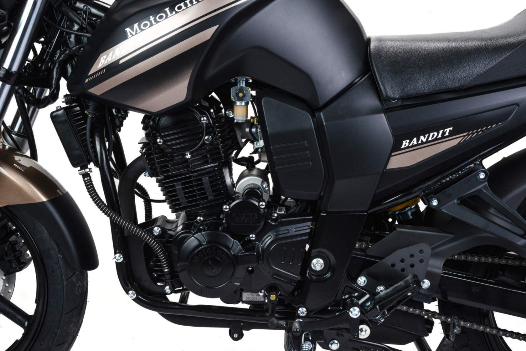 Мотоцикл Motoland BANDIT 300 является классическим представителем семейства дорожным мотоциклов. При этом он обладает всеми чертами мощного сити-байка необходимыми для комфортного передвижения как по городу, так и по шоссе.Стальная рама, объем топливного бака 18 литров. Расход топлива 3 л. на 100кмПодвеска передняя: Телескопическая. Подвеска задняя: моноамортизатор.Колесные диски алюминиевые, размер колес — 17 дюймов. Размер резины (перед / зад): 100/80/17 140/60/17 Зеркала, крепление под номер, подножки второго пассажира. Тормоза дисковые. Мягкое сиденье, обшивка из кож-замаФара, электростартер, замок зажигания, АКБ, поворотники, стоп-сигнал, электронная приборная панель.Двигатель 175FMM бензиновый с воздушно-масляным охлаждением, его рабочий объем - 300 кубов, мощность 25 л.с. Коробка передач - механическая, 5-ступенчатая, знакомая всем водителям по автошколе, а потому разобраться не составит труда.