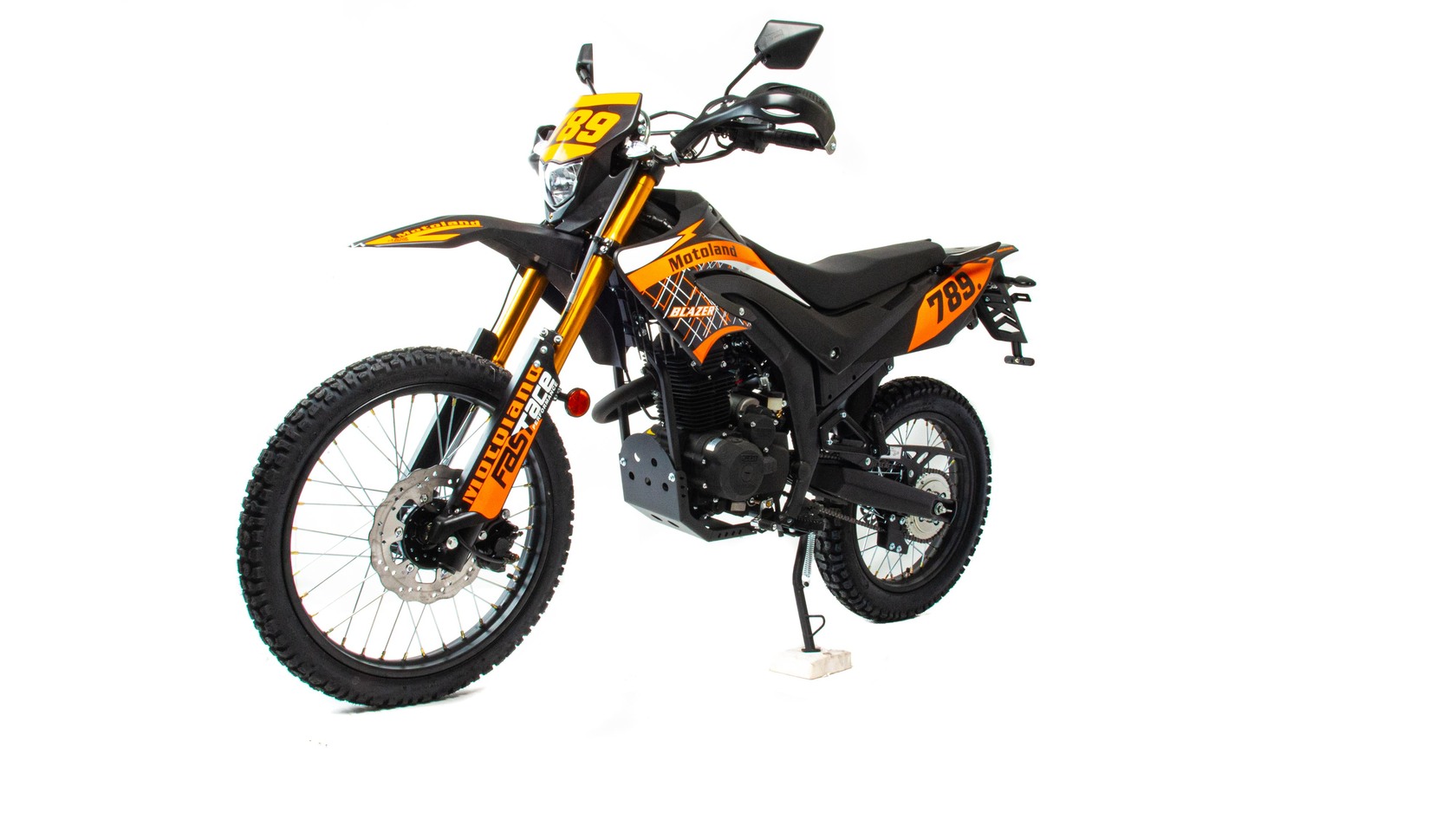 Motoland BLAZER 250 - отличный эндуро-мотоцикл по доступной цене. Двигатель 165FMM мощностью 16 л. с., усиленную «перевернутую» переднюю вилку, защиту двигателя и рук, LCD-панель, светодиодные поворотники и стоп-сигнал и кроссовую фару.Переднее колесо 2.75-21, заднее колесо 4.0-18.мотоцикл двойного назначения – для асфальта и легкого бездорожья.Наличие ПТС дает возможность легально передвигаться по городским улицам и дорогам общего пользования, внедорожные качества позволяет без особых усилий преодолевать бездорожье.Как видите, за довольно символическую цену вы получаете полноценный эндуро мотоцикл. После небольшой доработки мотоцикла, его свободно можно использовать для эндуро рейдов.Blazer 250 отлично подойдет как опытным любителям эндуро, так и начинающим.Мотоцикл маневренный и потрясающе удобный в городе, из за своей узкой и высокой формы, способный пролезть даже в минимальные зазоры между стоящими в пробке автомобилями. , внедорожные качества позволяет без усилий преодолевать грязь и трудопроходивые места .Максимальную скорость – 120 км/ч которой для города и неспешных прогулок за его пределы вполне достаточно..При этом он прост в управлении и неприхотлив в обслуживании и подходит мотолюбителям любого возраста,и опыта вождения.Мягкое сидение для 2-х пассажиров и подножки пассажира для удобных совместных поездок.Тихий городской глушитель, который не доставит вам дискомфорта.Скромный расход топлива, который почти не зависит от того, с какой скоростью едет мотоцикл и на каких оборотах работает двигатель, в среднем это 3,2-3,5 л на 100 км.Мотоцикл прост в управлении и неприхотлив в обслуживании. Подходит мотолюбителям Эндуро любого возраста и опыта вождения, которым нужна техника для поездок из точки А в точку Б и обратно по дорогам и легкому бездорожью.Технические характеристикиMotoland BLAZER 250 оснащен одноцилиндровым четырехтактным двигателем с воздушным охлаждением.Двигатель 172 FMM мощностью 21 л. с. и объемом 250 см³, ГРМ ЦепнойКарбюратор PZ 30 .Для запуска двигателя можно использовать электростартер или кикстартер.Механическая трансмиссия содержит 5 передач.Полудуплексная стальная рамаДополнительный бардачок для ключей Установлена 428 цепь Защита рукМотоцикл оснащен надежными передними и задними тормозами с двух и одно поршневыми тормозными суппортами соответственно.Колёса спицованные, размер заднего колеса — 18 дюймов, переднего — 21 дюймВесит 120 кг, выдерживает нагрузку до 150 кг.