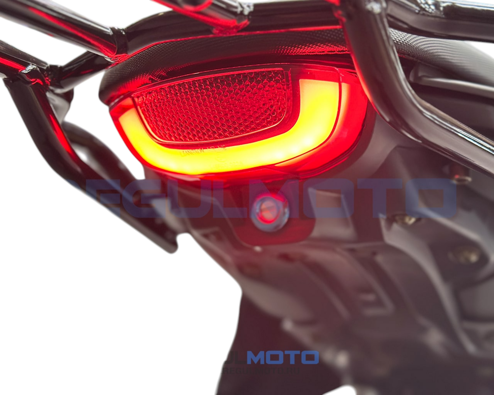 • Полное LED-оснащение: фара, стоп-сигнал, поворотники + доп. жёлтый свет (противотуманки)