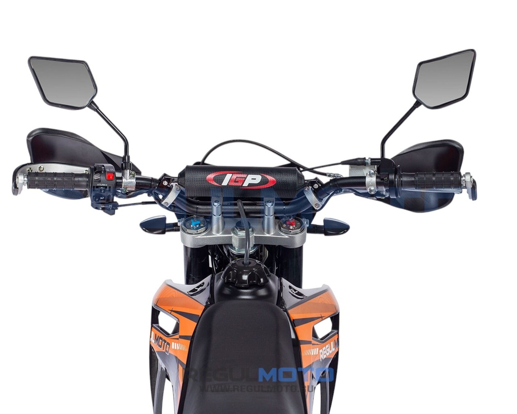 Мотоцикл Regulmoto Sport-003 PR PRO. - Двигатель 172, балансир, 300 поршевая Zongshen, алюминиевые обода, злая резина, новый пластик облицовки бензобака, колодки синтетика.Передние амортизаторы с быстрой регулировкой, 41мм. Алюминиевые диски из одного из самых прочных сплавов 7116. Из этого сплава производятся рули Renthal. Шины с увеличенными грунтозацепами, мягкий компаунд.