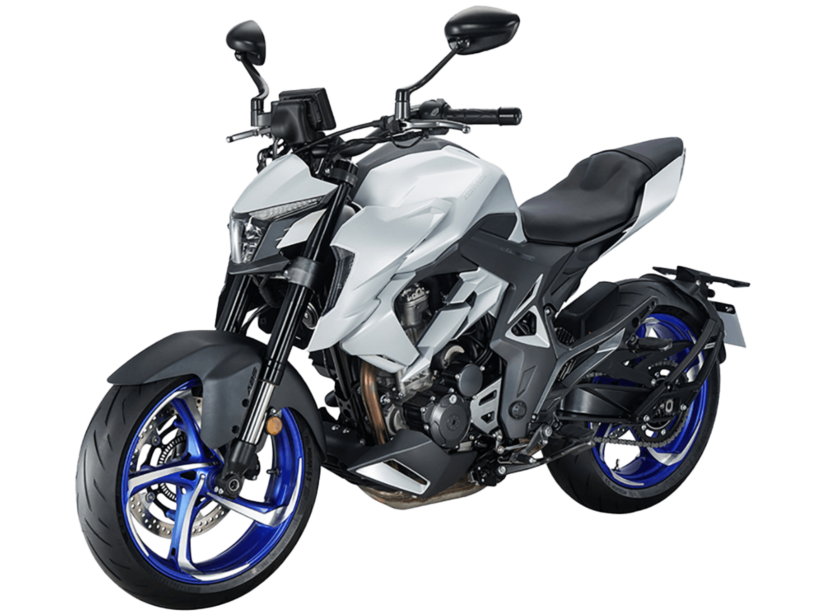 Мотоцикл ZONTES ZT350-R – современный нейкед со стремительным и дерзким дизайном. Хорошо подходит как для поездок в городской среде и маневрирования в межрядье.Силовая установка представлена одноцилиндровым 4-тактным двигателем ZT184MP с 4 клапанами и 2 верхними распредвалами. Двигатель имеет объём 348 см³ и обеспечивает мощность в 39 л.с. Оснащён инжектором BOSCH и системой жидкостного охлаждения. Механическая коробка передач имеет 6 ступеней и схему 1-N-2-3-4-5-6. Запуск двигателя осуществляется с помощью бесключевого доступа.Ёмкость топливного бака 15 литров.Колёса представлены литыми алюминиевыми дисками диаметром 17 дюймов. На мотоцикл установлены датчики давления в шинах, показатели от которых выводятся на приборную панель. Для подвески спереди используется телескопическая вилка, сзади – моноамортизатор. Гидравлические дисковые тормоза произведены испанской компанией J.JUAN, входящей в холдинг BREMBO.Для освещения используется яркая LED-оптика, а приборная панель представлена цифровым дисплеем. Имеется 2 USB-порта.Габариты мотоцикла 2030х795х1120 мм. Колёсная база 1390 мм. Высота по седлу 795 мм. Вес 165 кг.Комплектация и внешний вид мотоцикла могут отличаться в зависимости от поставки. Изображение на сайте не гарантирует наличие тех или иных опций. Уточняйте информацию при оформлении заказа.