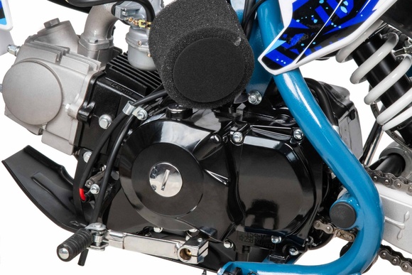 Питбайк Motoland TCX125 14/12 идеален для поездок по грунтовым дорогам и бездорожью. Хорошо чувствует себя на мягком и среднем грунте, разгоняется до 90 км/ч. Оснащён спортивными траверсами, весит всего 70 кг.Питбайк прост в управлении и не требует специального ухода, подойдёт как новичкам, так и любителям мотокросса.Питбайка отличный узнаваемый дизайн. Конструкция подчёркивает неуступчивый спортивный характер, который не остановится ни перед одним препятствием.Комбинированный прочный пластик не ломается при сгибании.Передняя подвеска — телескопическая вилка перевёрнутого типа (с регулировкой по давлению воздуха), которая отлично подходит для преодоления ям, и других неровностей плохих дорог или их отсутствия. Задняя подвеска маятниковая с моноамортизатором.Мотоцикл оснащён одноцилиндровым четырёхтактным двигателем с воздушным охлаждением. Надёжный мотор 152FMI мощностью 8 л. с. и объемом 125 см³ , установленный на усиленной стальной раме, коробка передач автоматическая, четырёхступенчатая